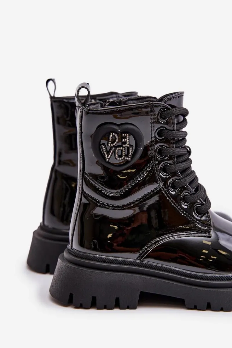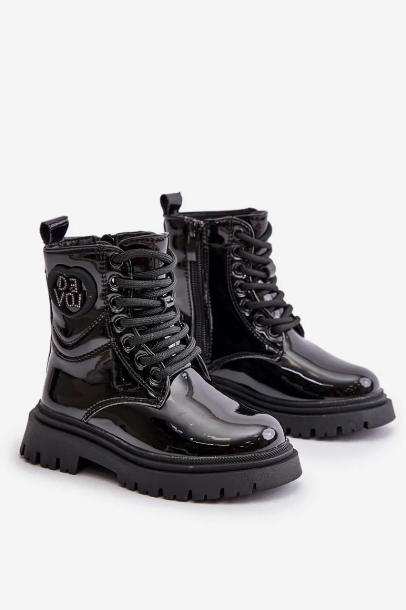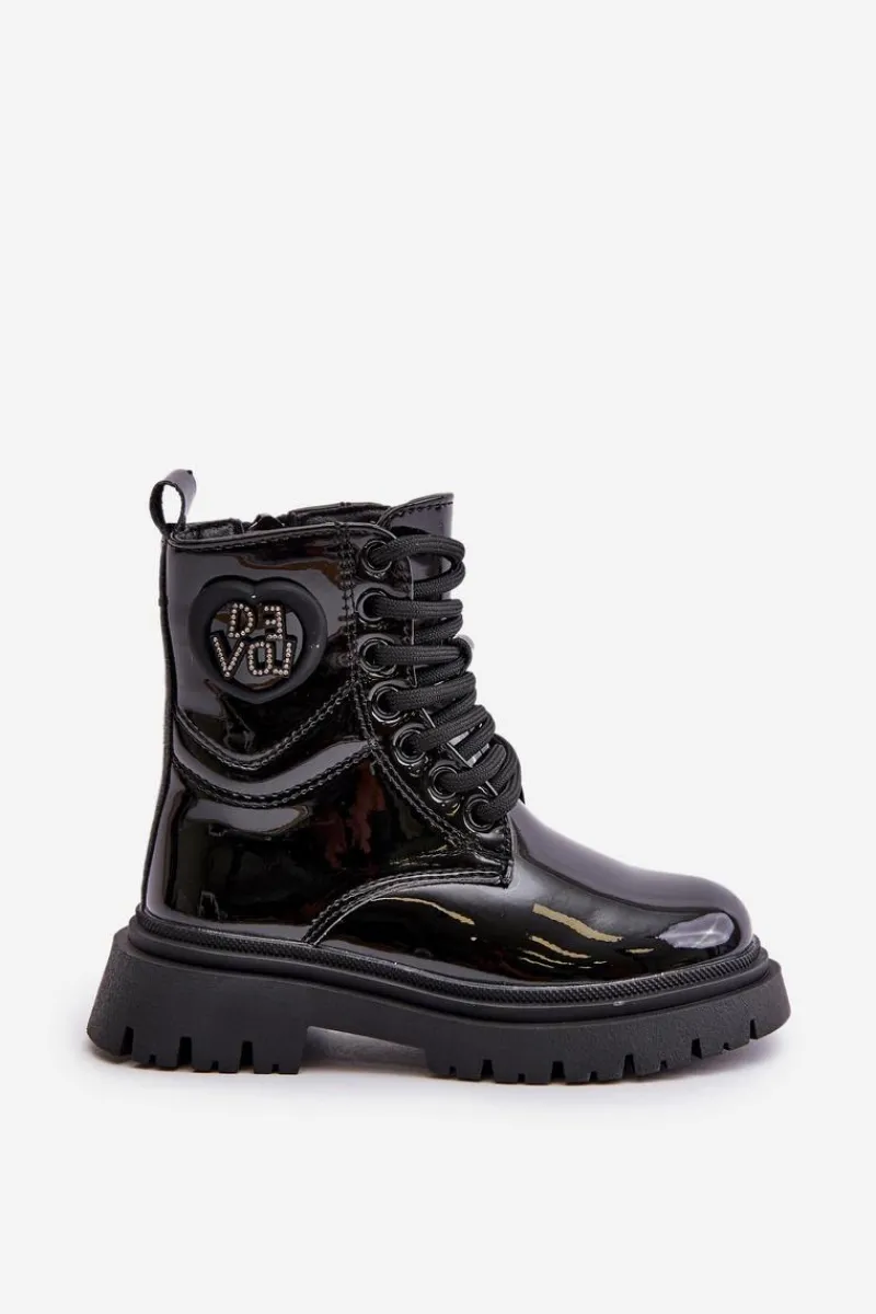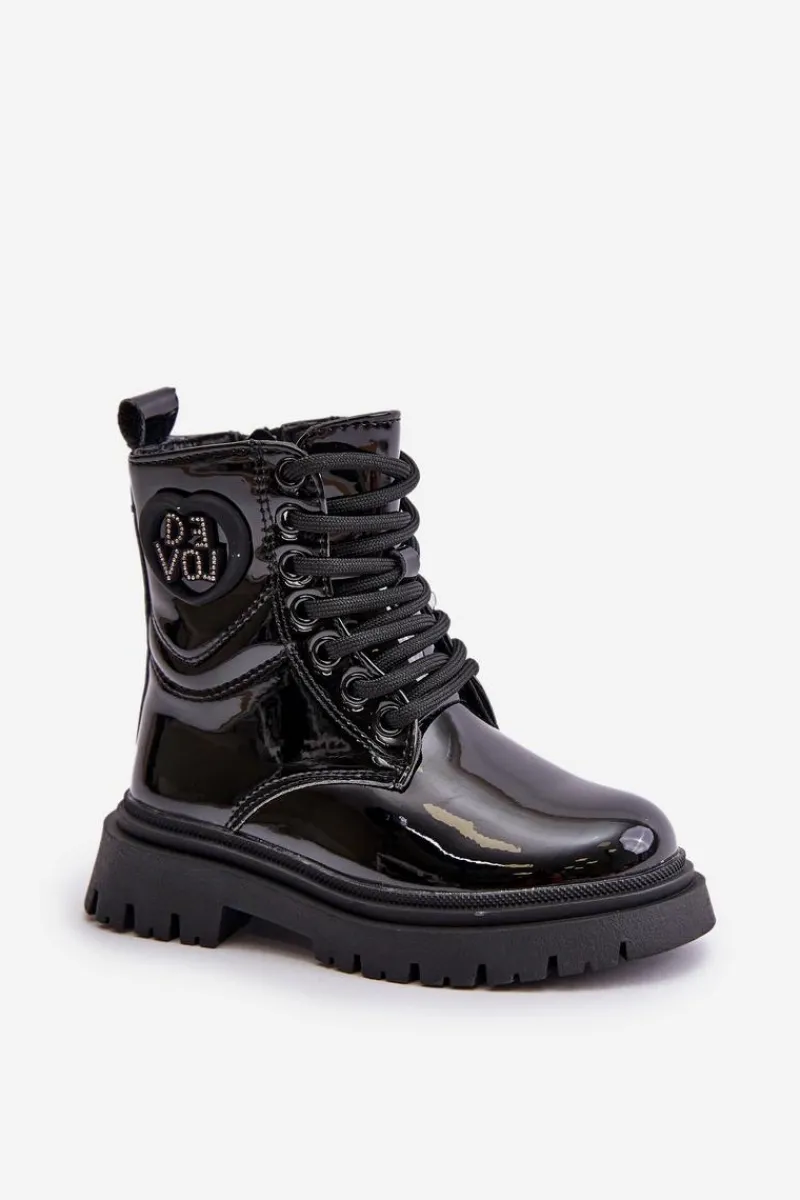 Dziewczęce botki wykonane z eko skóry to doskonały wybór na chłodniejsze dni. Model zapinany na zamek z boku oraz dodatkowo sznurowany, co gwarantuje idealne dopasowanie i stabilność. Wnętrze butów jest ocieplane miękkim futerkiem, zapewniającym ciepło i komfort przez cały dzień. Na cholewce znajduje się ozdoba, która dodaje wyjątkowego uroku. Przy wyborze rozmiaru prosimy kierować tabelą rozmiarów.