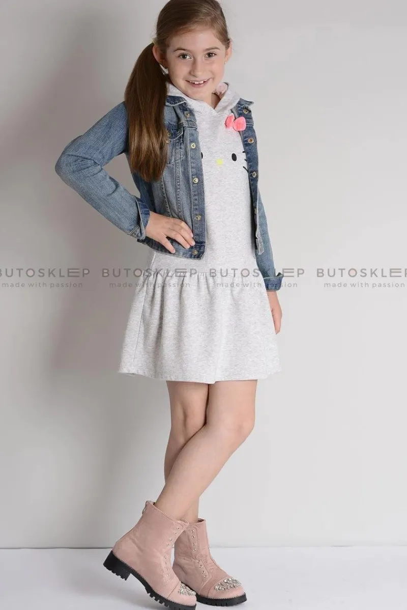 Dziewczęce>Boto Lu Boo Dziecięce Botki Za Kostkę z Cyrkoniami Pudrowy Róż LittleCarrie