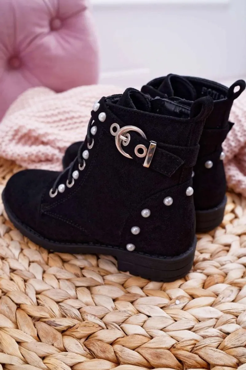 Dziewczęce>Boto Młodzieżowe Botki Perły Czarne Nargos