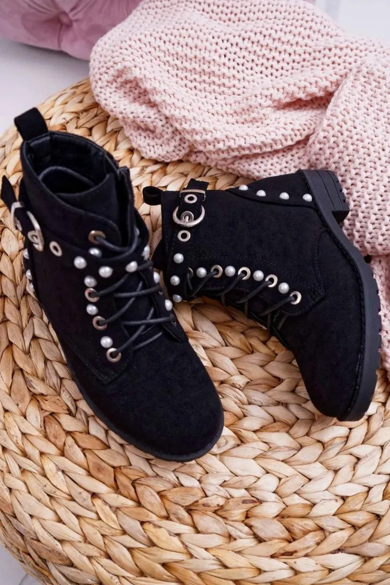 Podczas chłodnych dni warto zadbać o wygodne obuwie. Jedną z naszych propozycją są te wspaniałe botki. Płaski obcas zapewni stabilność pozycji. Botki zdobione perłami. Koniecznie sprawdź całą naszą ofertę. Przy wyborze rozmiaru prosimy kierować tabelą rozmiarów.