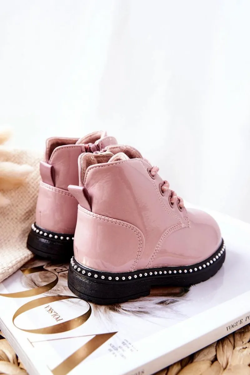 Klasyczne botki idealne na wiele okazji. Wykonane z lakierowanej eko skóry. Całość ocieplana przyjemnym w dotyku futerkiem. Botki posiadają suwak oraz wiązanie, dzięki któremu można je dopasować do nogi. Piękne zdobienia na podeszwie dodają uroku. Sprawdź koniecznie naszą pozostałą kolekcję botków! Przy wyborze rozmiaru prosimy kierować tabelą rozmiarów.