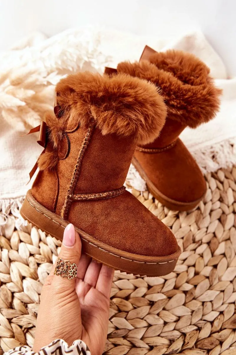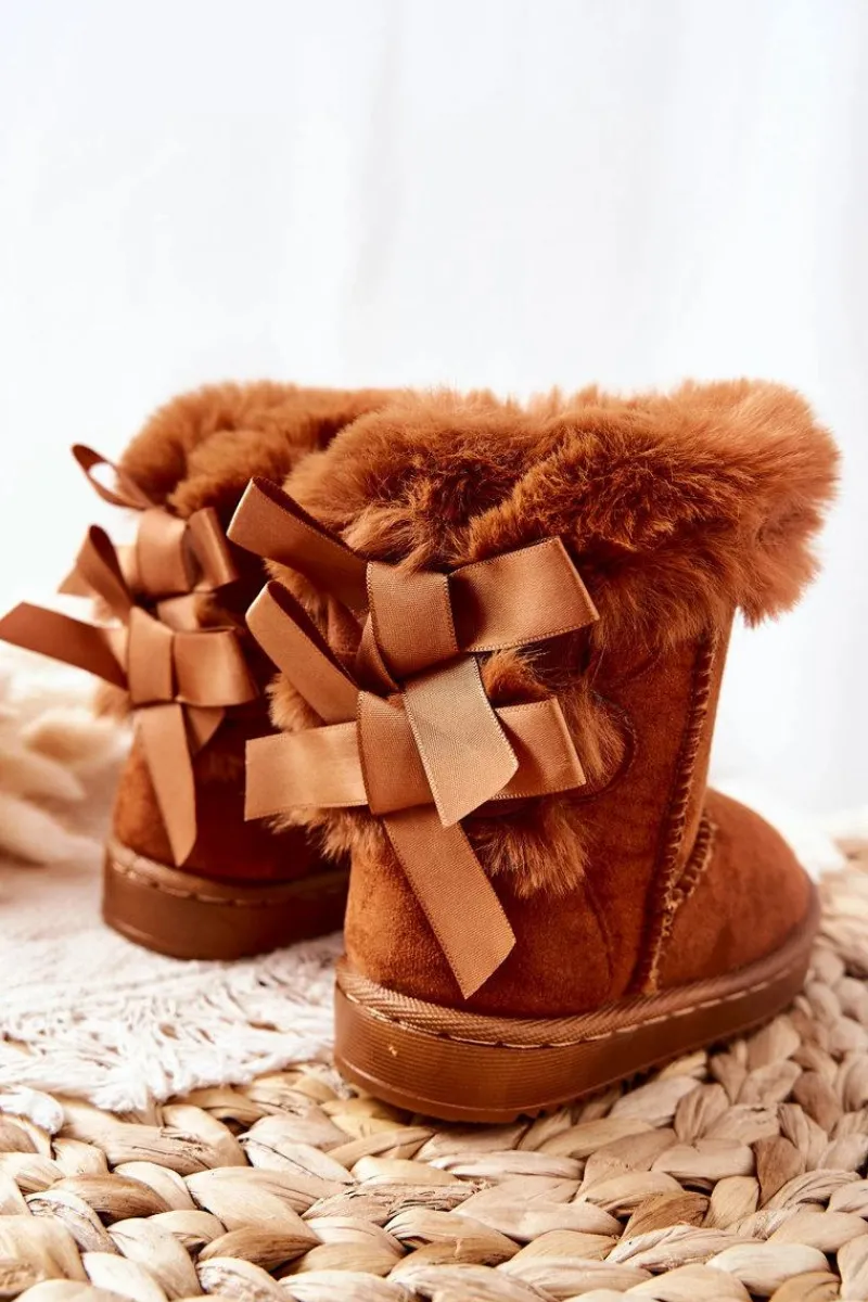Dziewczęce|Chłopięce>Boto Dziecięce Ocieplane Botki Z Kokardkami Śniegowce D.Khaki Funky