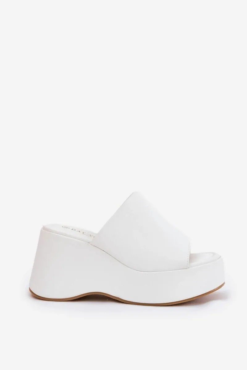 Stylowe klapki wykonane z eko skóry. Osadzone na platformie i koturnie, zapewniają stabilność i komfort przez cały dzień, jednocześnie optycznie wydłużając nogi i podkreślając sylwetkę. Miękka wkładka gwarantuje przyjemność noszenia, zapewniając odpowiednią amortyzację i wygodę podczas chodzenia. Te klapki doskonale sprawdzą się w codziennych stylizacjach, idealne do letnich sukienek, spódnic czy spodni. Przy wyborze rozmiaru prosimy sugerować się tabelą rozmiarów.