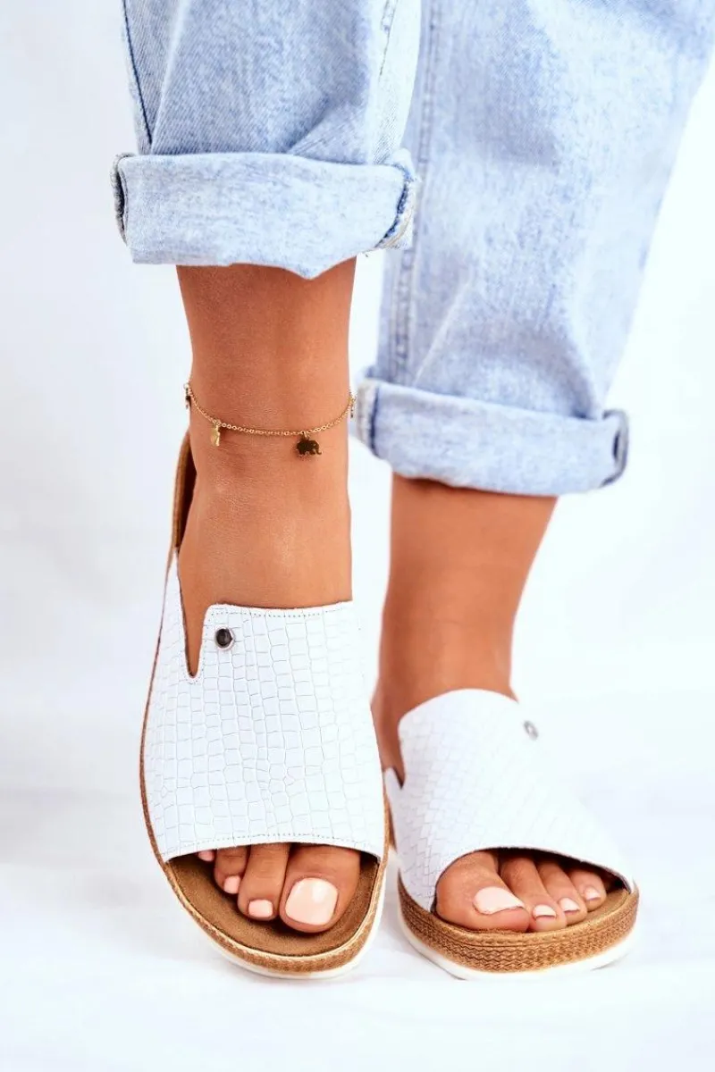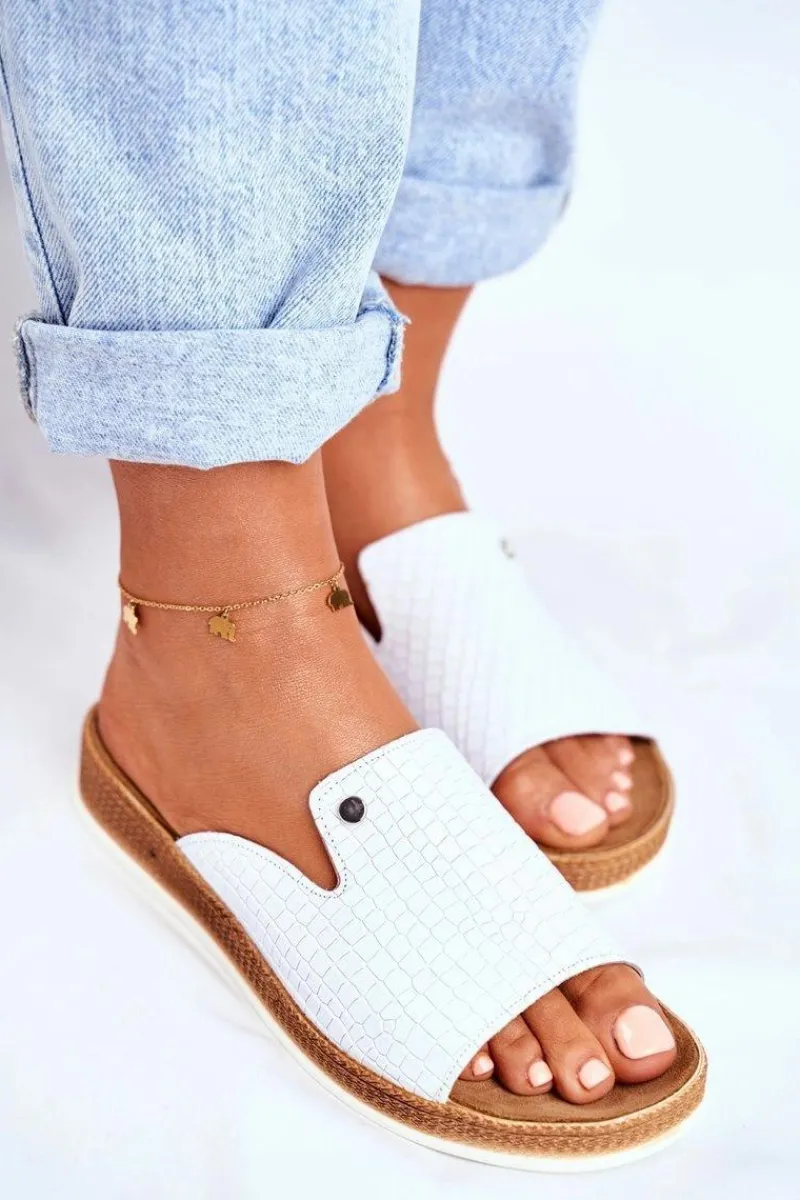 Eleganckie Skórzane Klapki Białe Nicole 2495 Damskie Klapki Damskie Klasyczne
