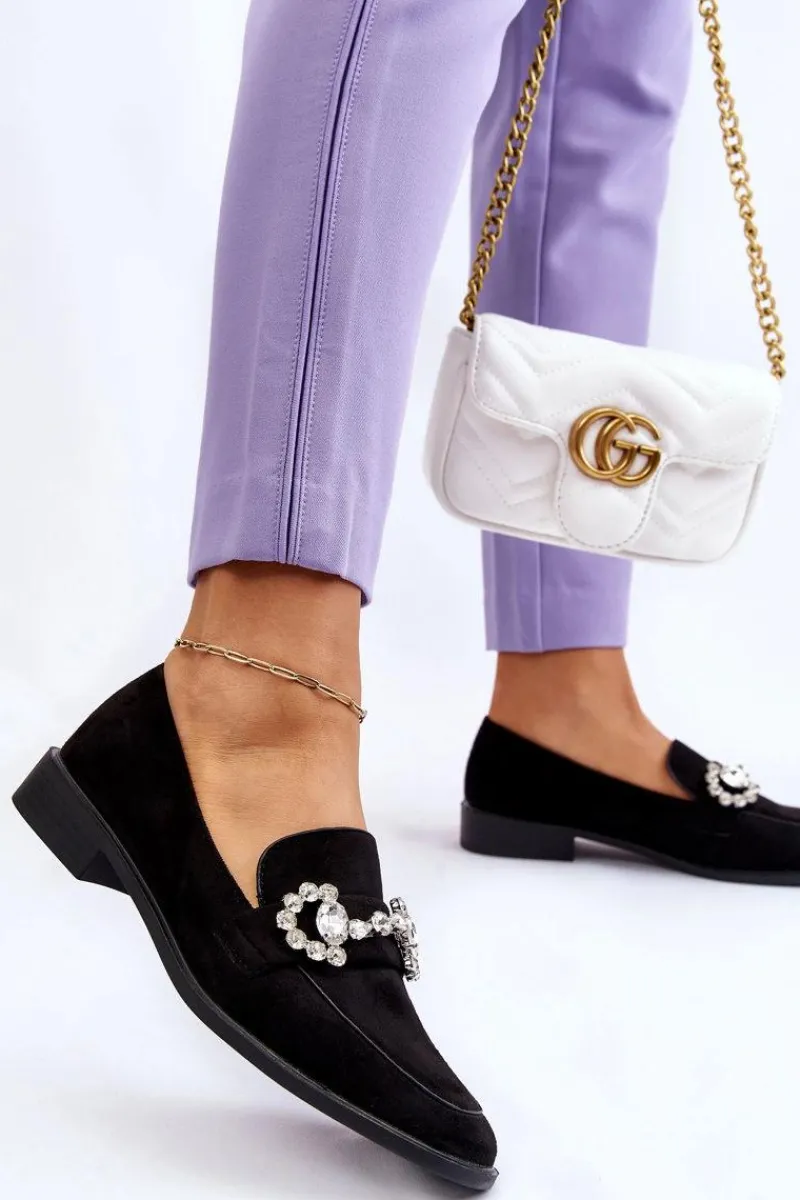 Damskie mokasyny z miękką wkładką z eko skóry. Buty te posiadają elegancką ozdobę na przodzie w postaci imitacji kryształów. Osadzone na płaskim obcasie z antypoślizgową podeszwą. Klasyczny model, idealny do wielu stylizacji! Koniecznie sprawdź także pozostałe modele mokasyn dostępne naszej ofercie! Przy wyborze rozmiaru prosimy sugerować się tabelą rozmiarów.
