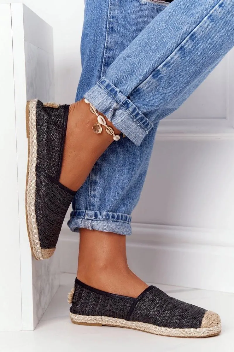 Espadryle Na Słomkowej Podeszwie Lu Boo Czarne Damskie Czarne Espadryle