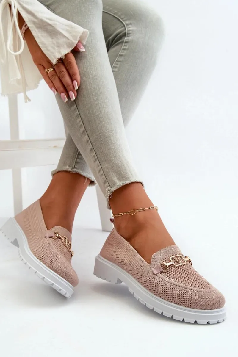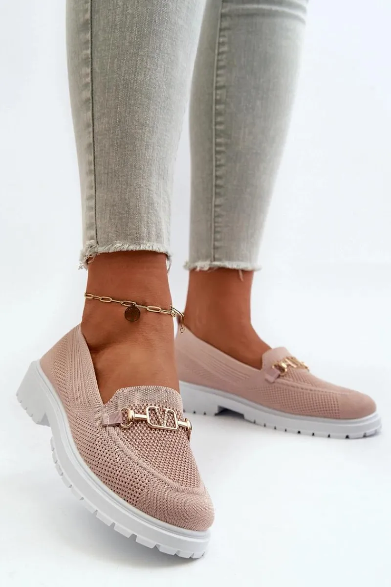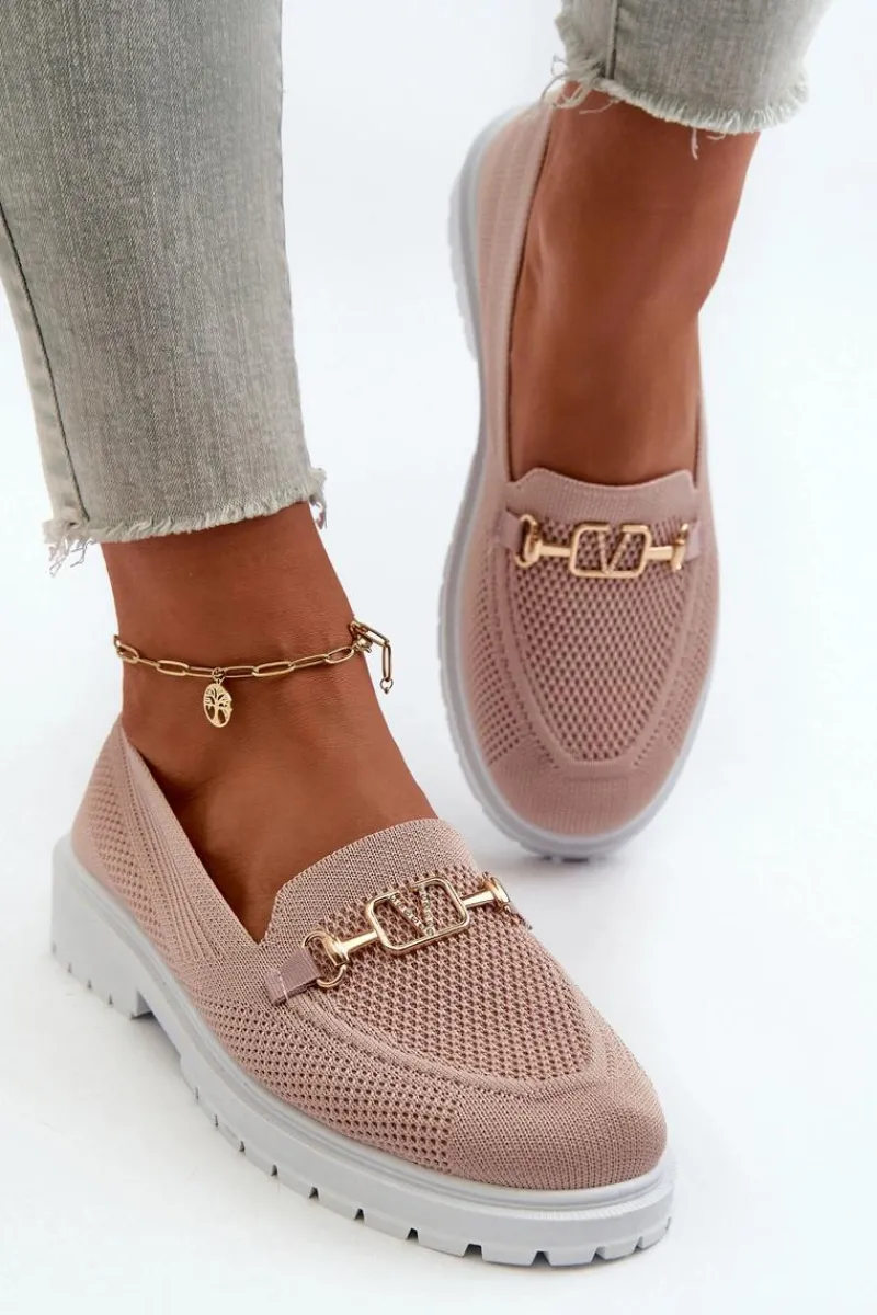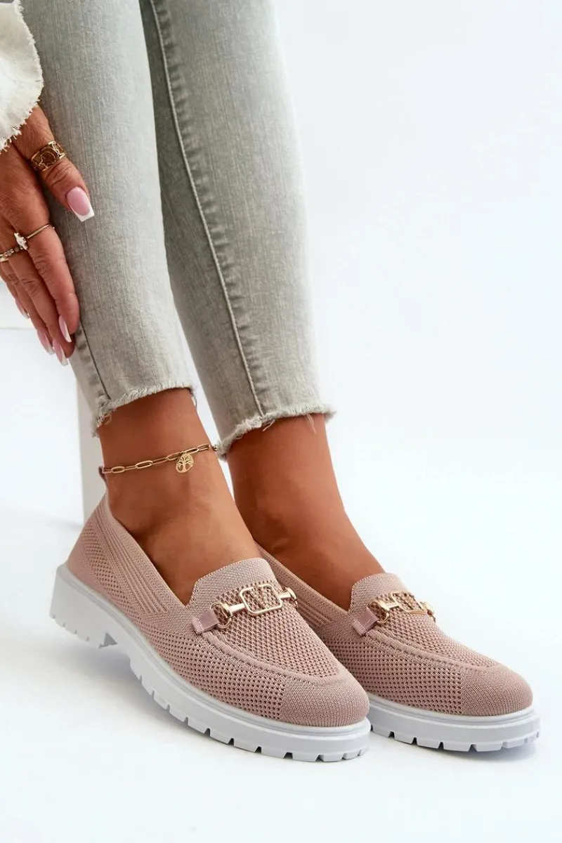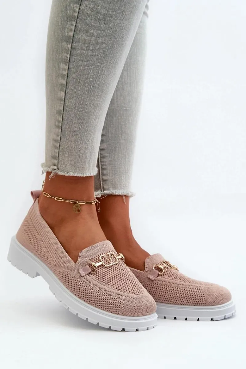 Damskie mokasyny wykonane z przewiewnej tkaniny. Osadzone na płaskim obcasie, co zapewnia komfort noszenia przez cały dzień. Zaokrąglone noski nadają im klasyczny wygląd. Ozdobione złotym detalem. Miękka wkładka z pianki, dodatkowo pokryta materiałem, gwarantuje wygodę. Przy wyborze rozmiaru prosimy sugerować się tabelą rozmiarów.