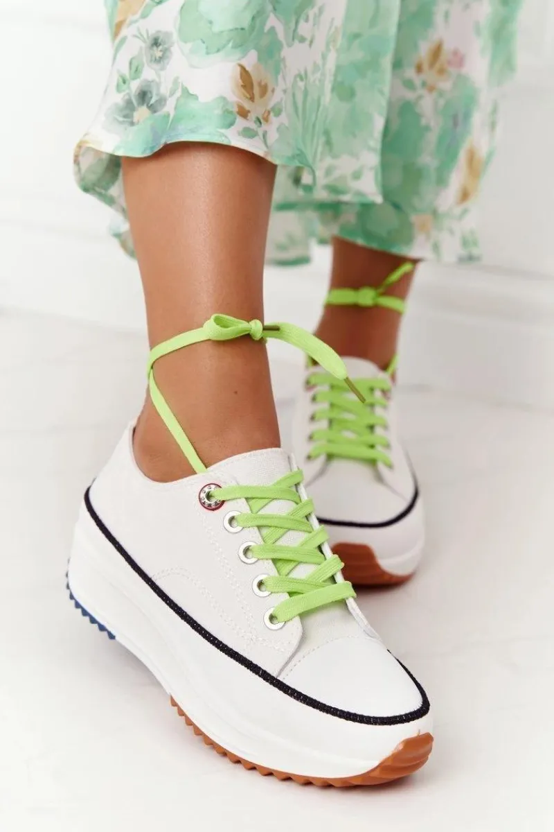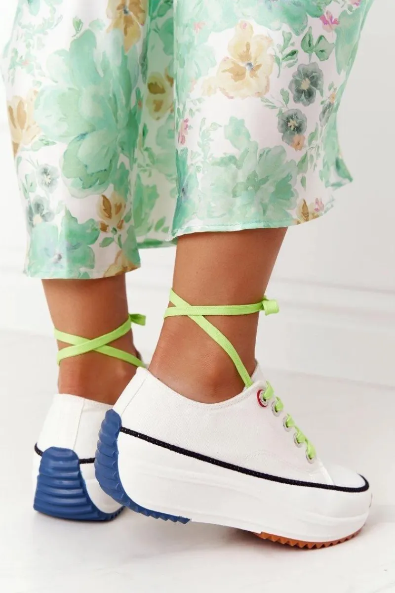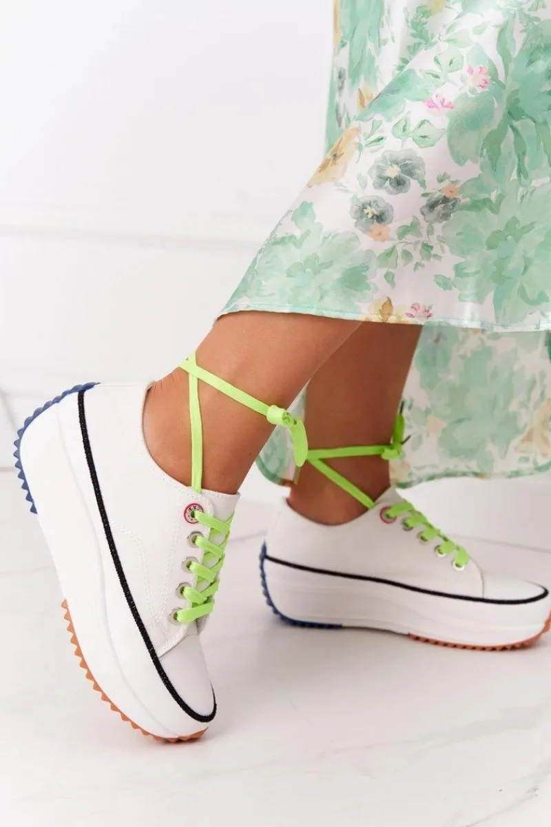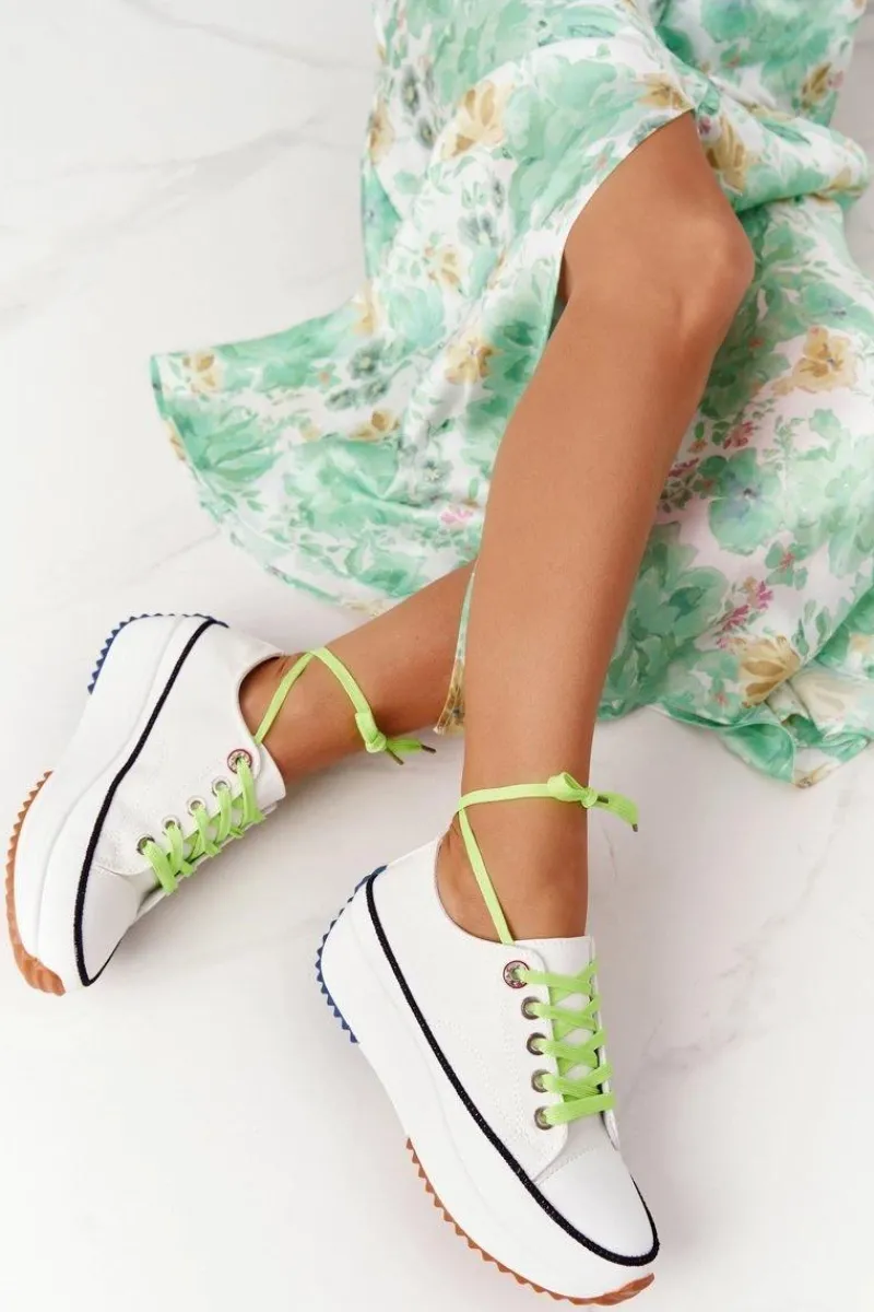 Wyjątkowe trampki na platformie. Buty dobrze dopasowują się do kształtu stopy, posiadają profilowaną wkładkę z eko skóry oraz antypoślizgową podeszwę. Koniecznie sprawdź całą naszą kolekcję trampek! Trampki posiadają dwie pary sznurówek – zielone oraz białe. Przy wyborze rozmiaru prosimy sugerować się tabelą rozmiarów.