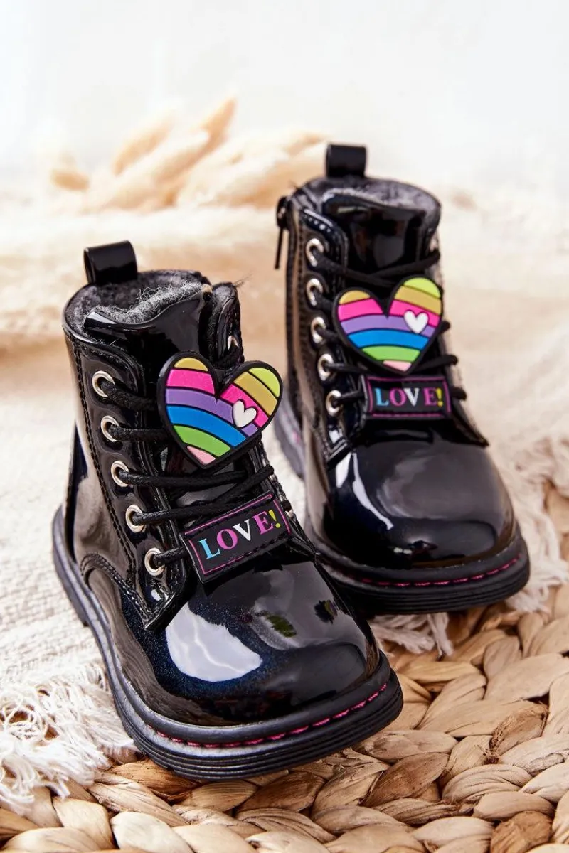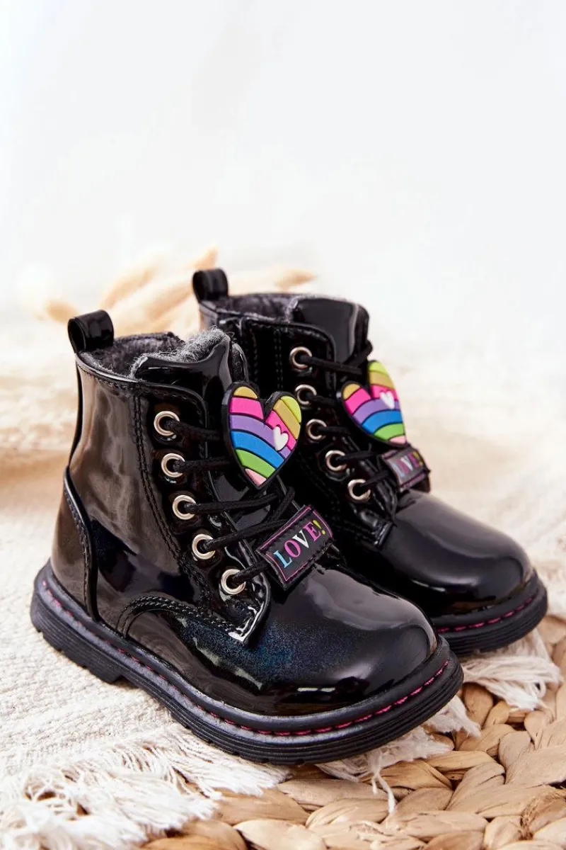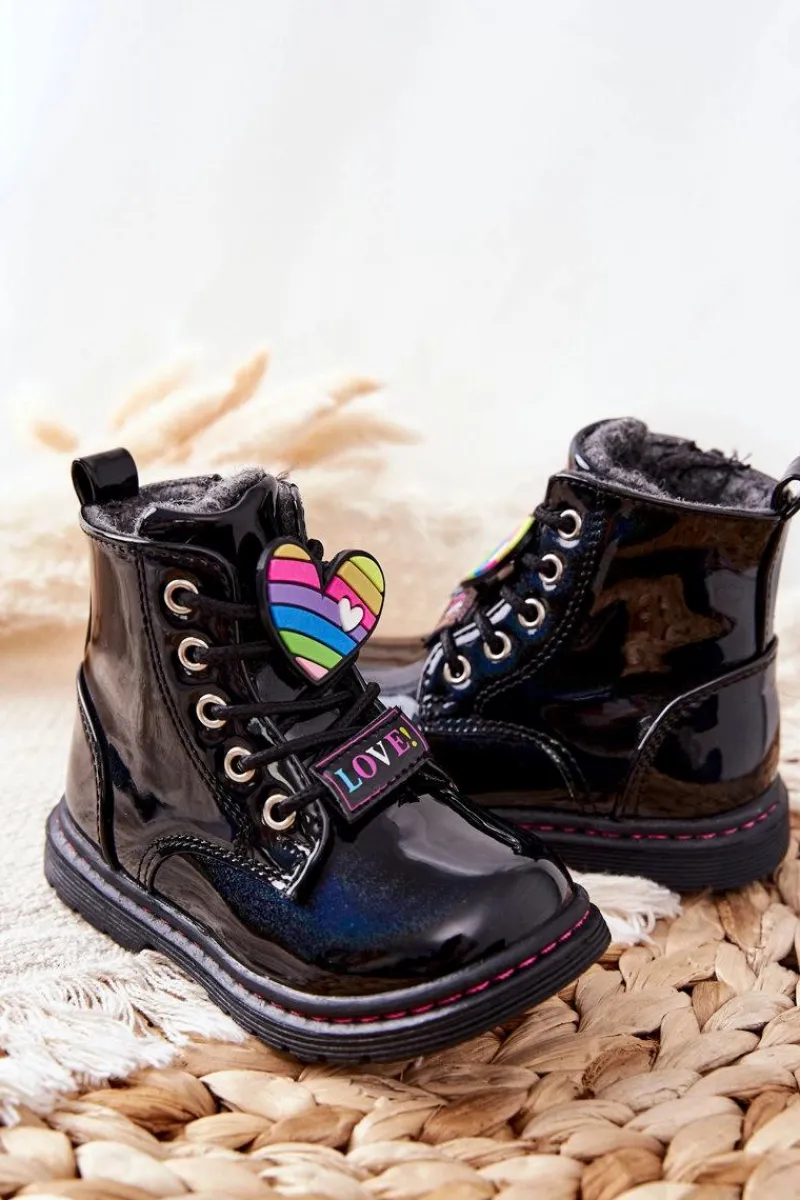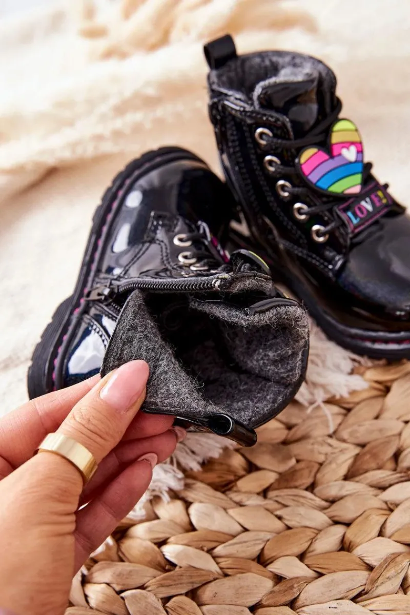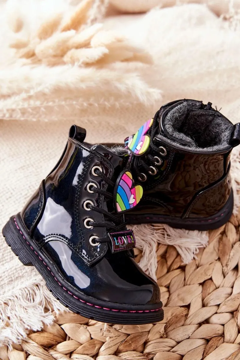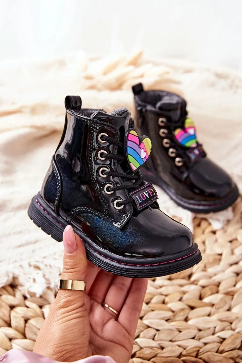 Piękne botki delikatnie się mienią i są wykonane z lakierowanej eko skóry. Posiadają ozdobne emblematy na sznurówkach. Zapinane na suwak. Będą idealne na chłodniejsze dni, ponieważ są ocieplane naturalną wełną. Suwak ułatwia zakładanie obuwia. Modne i wygodne botki będą pasować do wielu dziecięcych stylizacji. Przy wyborze rozmiaru prosimy kierować tabelą rozmiarów.