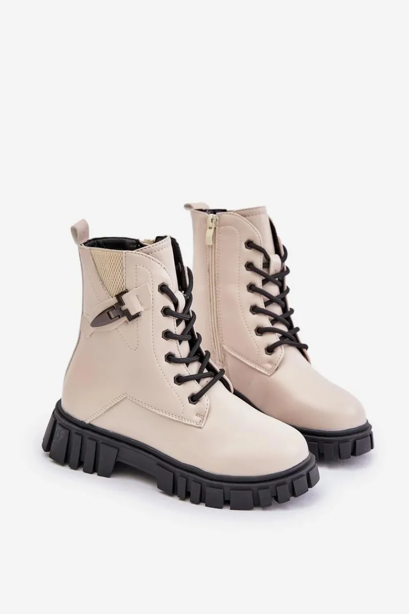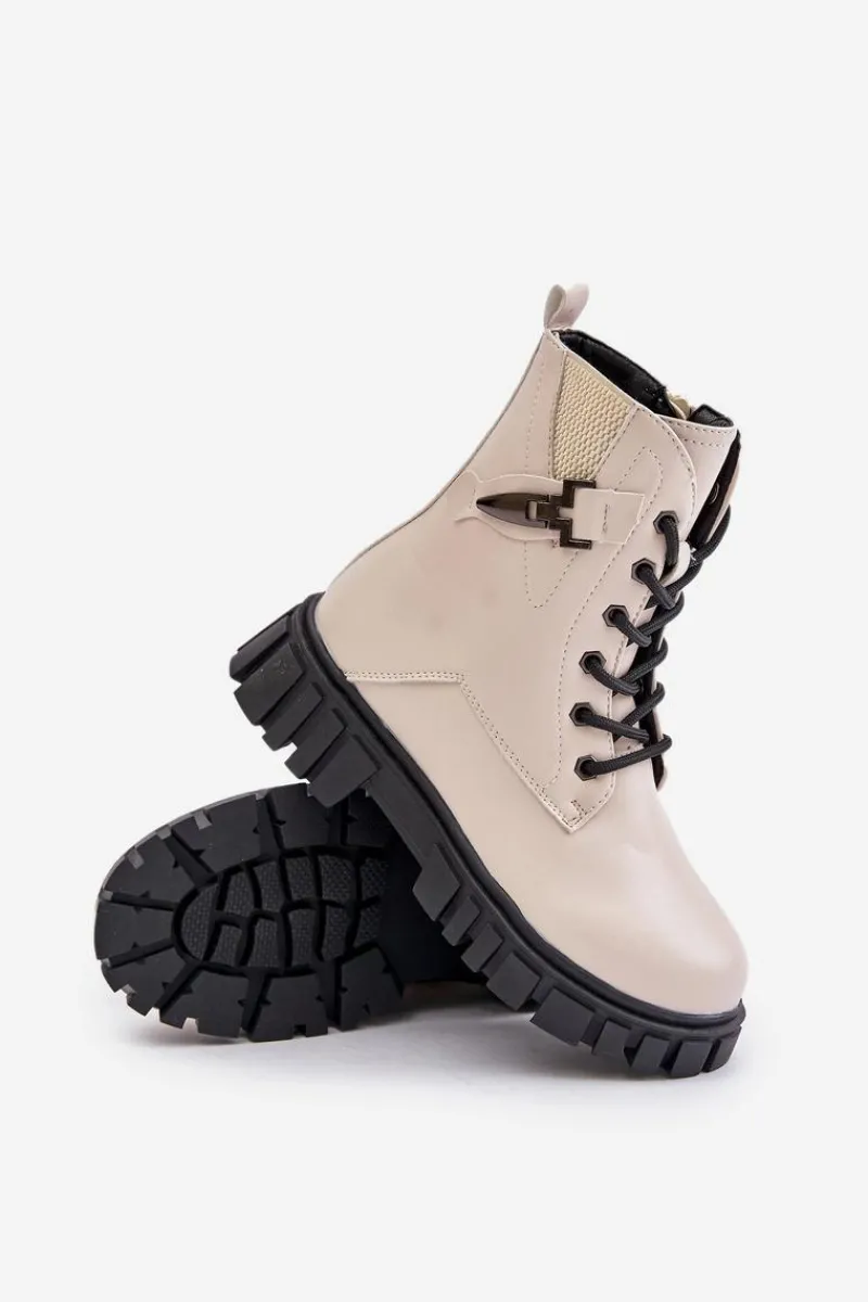 Dziewczęce botki wykonane z eko skóry to doskonały wybór na jesienne i zimowe dni. Zapinane na zamek i dodatkowo sznurowane, zapewniają łatwe zakładanie oraz idealne dopasowanie do stopy. Zaokrąglone noski nadają im klasyczny, subtelny wygląd. Wnętrze butów ocieplane jest miękkim kocem obuwniczym, który skutecznie chroni przed chłodem, gwarantując komfort noszenia nawet w niższych temperaturach. Na cholewce znajduje się ozdoba, dodająca uroku i stylu. Te botki łączą funkcjonalność z modnym wyglądem, idealne na chłodniejsze pory roku. Przy wyborze rozmiaru prosimy kierować tabelą rozmiarów.