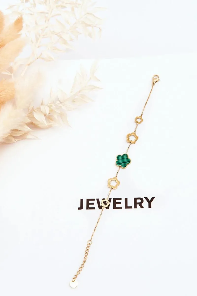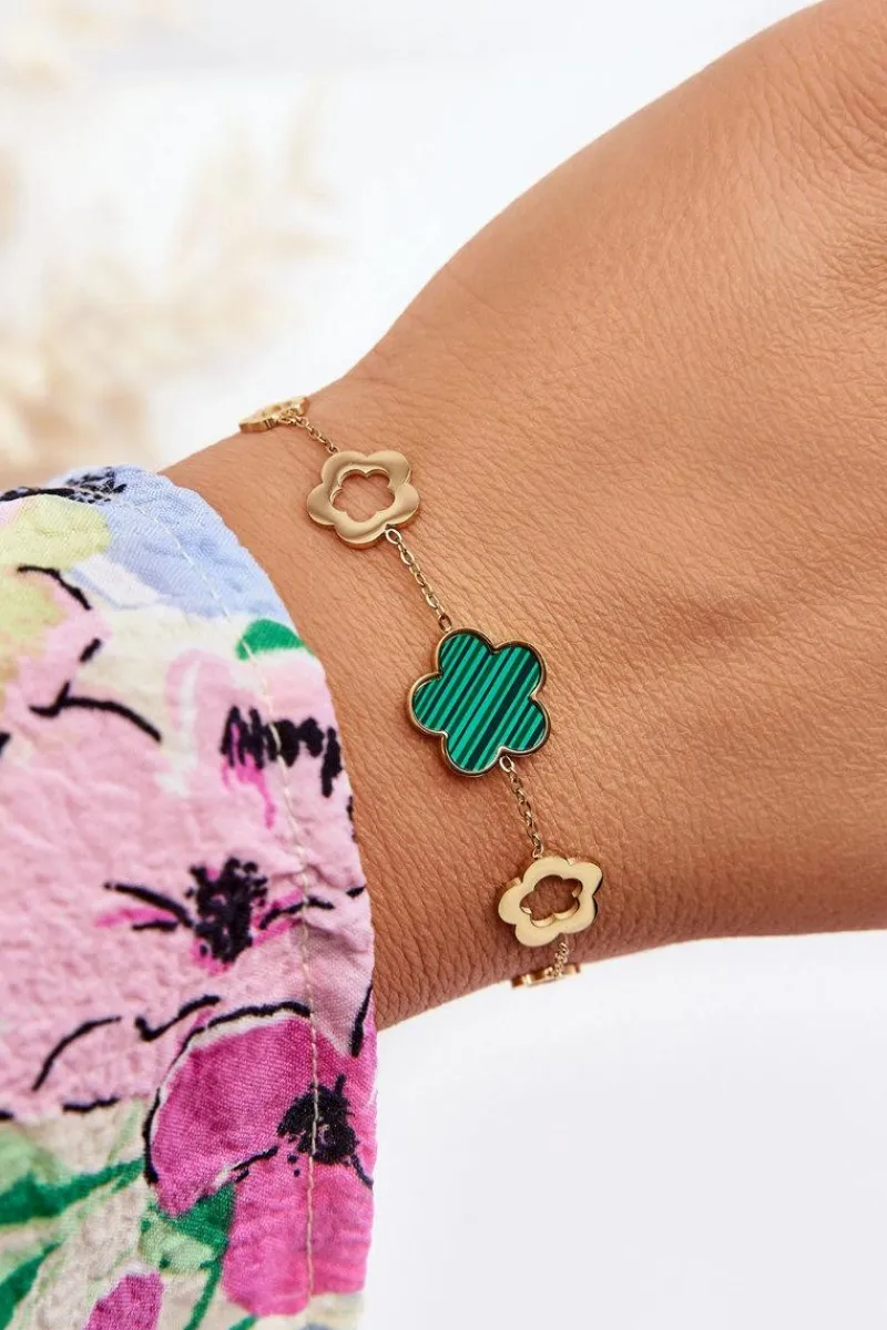 Glam Chic Damska Bransoletka Zawieszki Kwiaty Złoto-Zielona