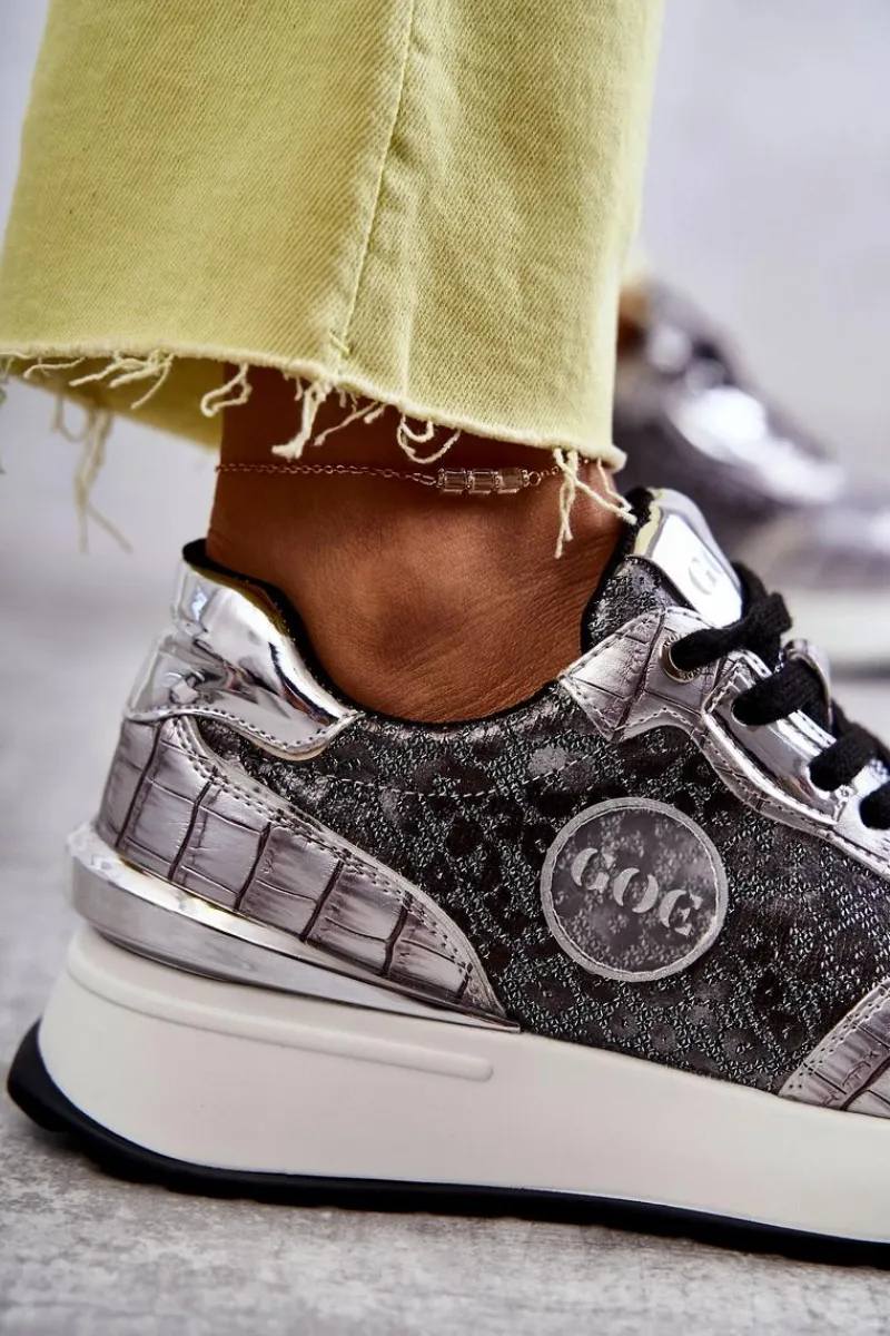 Modne obuwie sportowe marki GOE zostało wykonane z wysokiej jakości materiałów. Ciekawe wzornictwo wyróżnia te buty na tle innych. Posiadają ozdobny, gumowy emblemat z logo marki. Nad obcasem znajduje się ozdobny element. Model klasycznie sznurowany z blaszką z wygrawerowanym napisem GOE. Sneakersy zostały osadzone na masywnej platformie i koturnie. Niezwykle miękka, eko skórzana wkładka zapewni wygodę podczas użytkowania. Przy wyborze rozmiaru prosimy sugerować się tabelą rozmiarów.