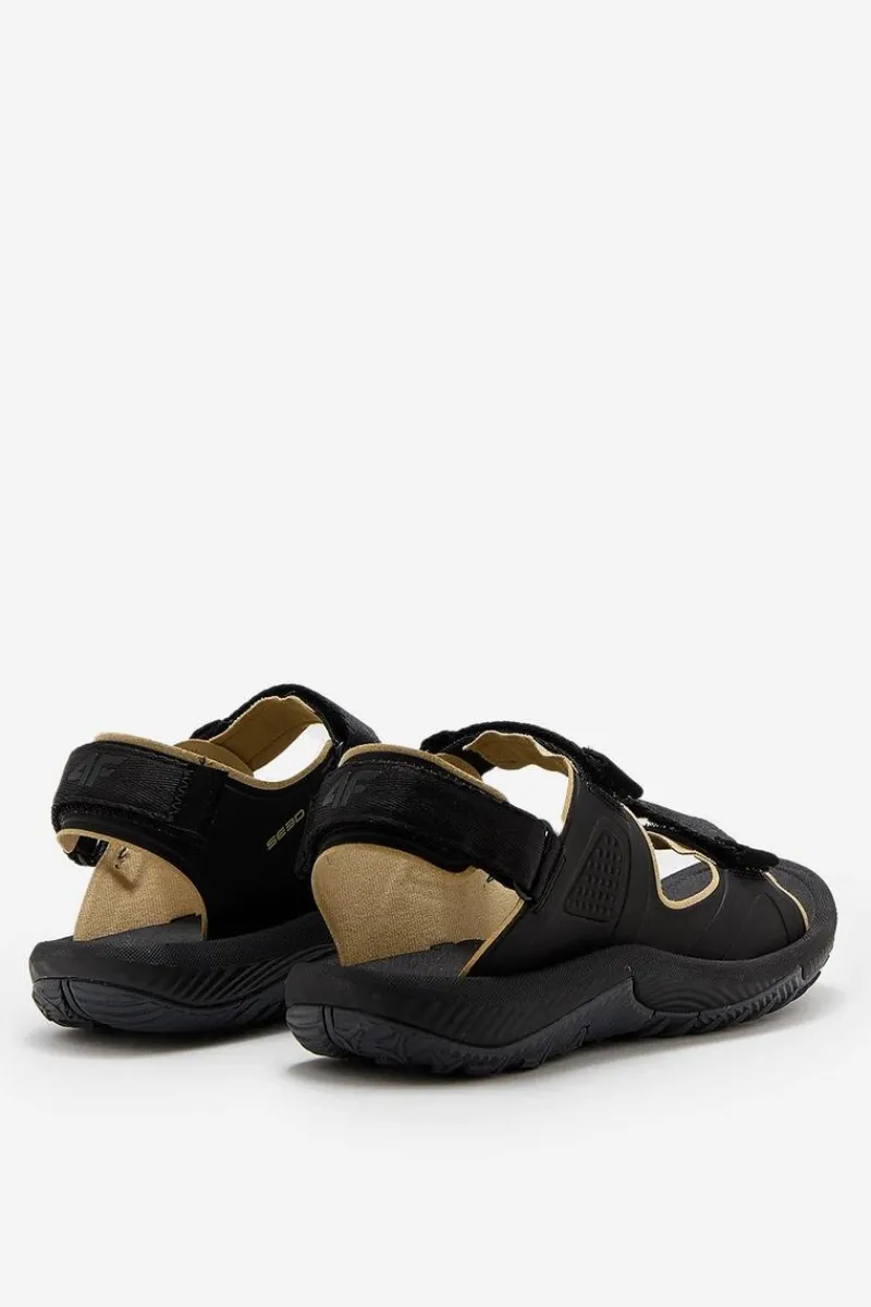 Sandały damskie w sportowym stylu od marki 4F. Model ten posiada potrójne zapięcie na rzep zapewnia solidne trzymanie stopy. Cholewka wykonana z syntetycznego materiału, podszyta miękkim jerseyem. Wkładka z pianki EVA to gwarancja wyjątkowego komfortu, a podeszwa zewnętrzna zapewnia optymalną przyczepność do różnych rodzajów podłoża, co czyni te sandały idealnym wyborem na letnie spacery, wycieczki czy aktywności rekreacyjne na świeżym powietrzu. Przy wyborze rozmiaru prosimy sugerować się tabelą rozmiarów.