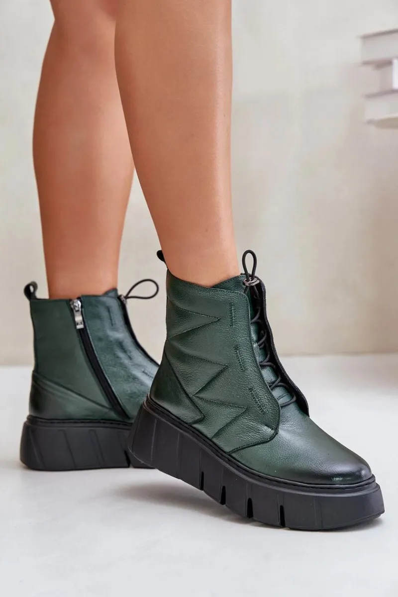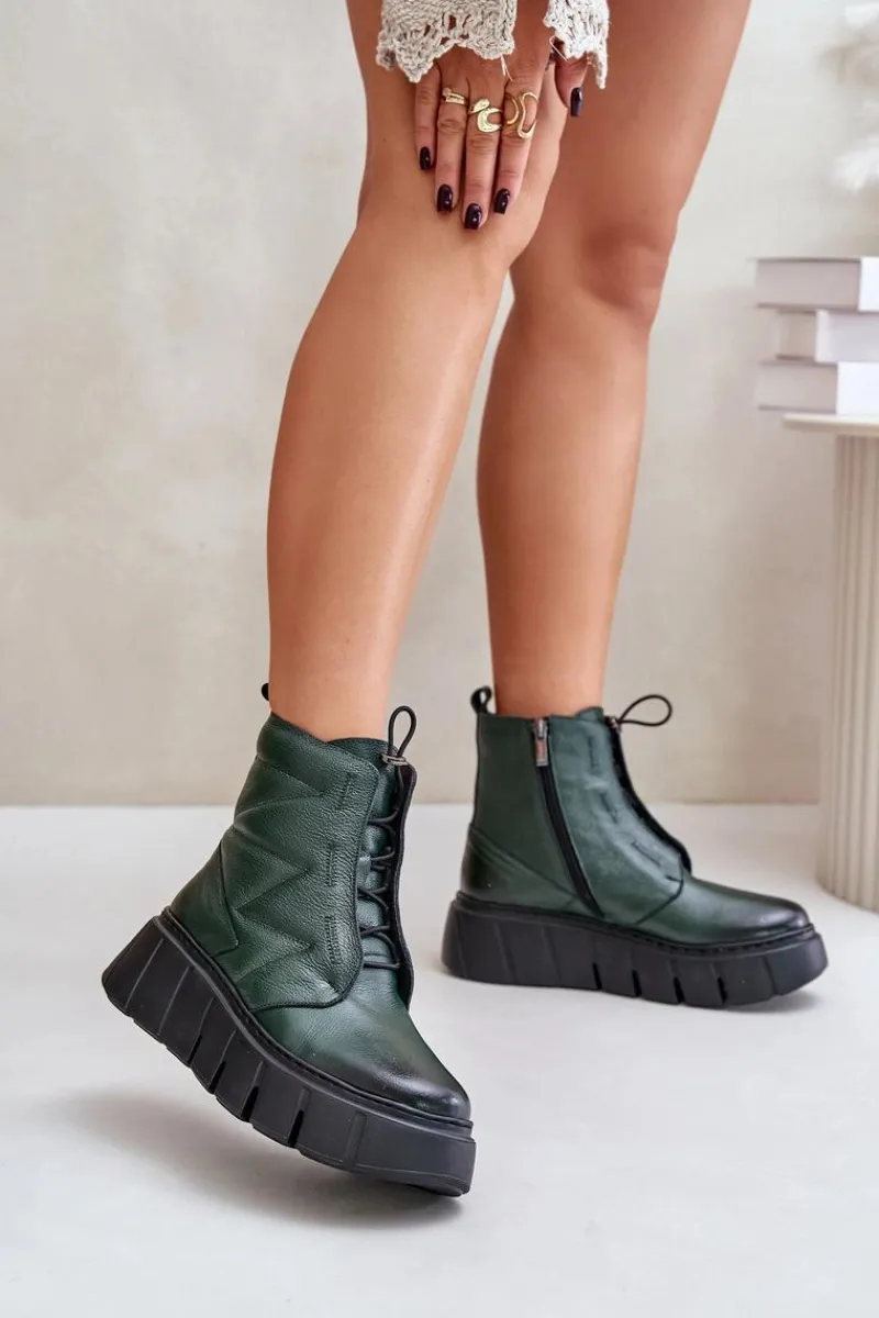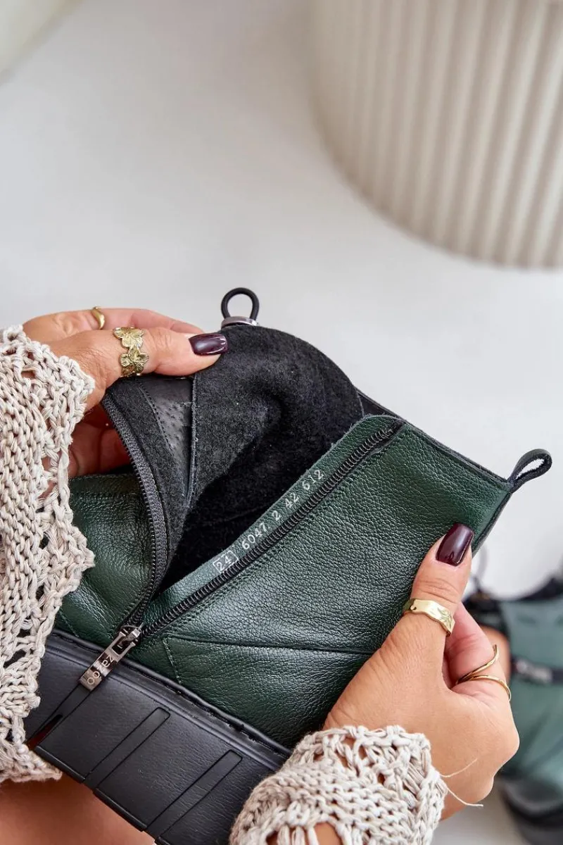 Damskie botki wykonane z naturalnej skóry, osadzone na platformie i koturnie, to idealny wybór na chłodniejsze dni. Ocieplane filcem, zapewniają ciepło i komfort noszenia. Model zapinany na zamek ułatwia zakładanie, a elegancki design sprawia, że botki doskonale pasują zarówno do codziennych, jak i bardziej stylowych stylizacji. Przy wyborze rozmiaru prosimy kierować się tabelą rozmiarów