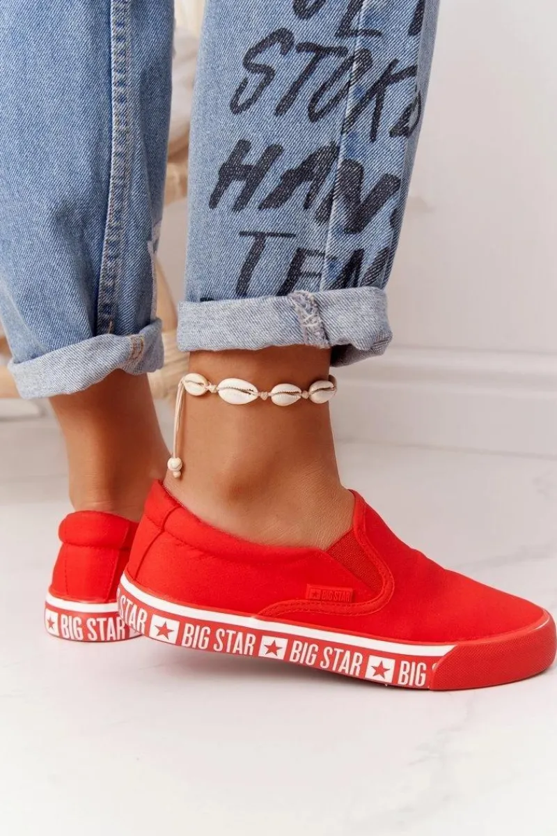 Hot Big Star Shoes Damskie Tenisówki Slip-on Big Star HH274010 Czerwone