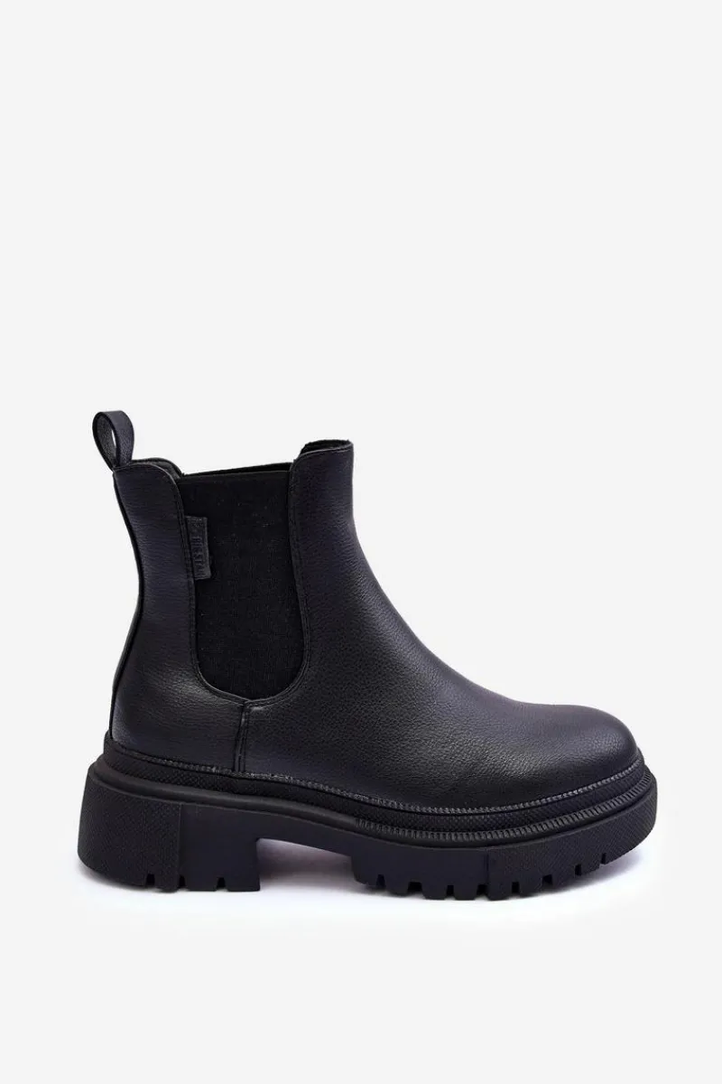 Wsuwane botki marki Big Star sprawdzą się niemalże w każdej stylizacji! Model ten został wykonany z eko skóry. Osadzone na płaskim obcasie i platformie z bieżnikiem. Środek ocieplony futerkiem. Noski zaokrąglone. Na cholewce elastyczne wstawki. Model ten posiada dodatkowo usztywniany zapiętek. Przy wyborze rozmiaru prosimy sugerować się tabelą rozmiarów.