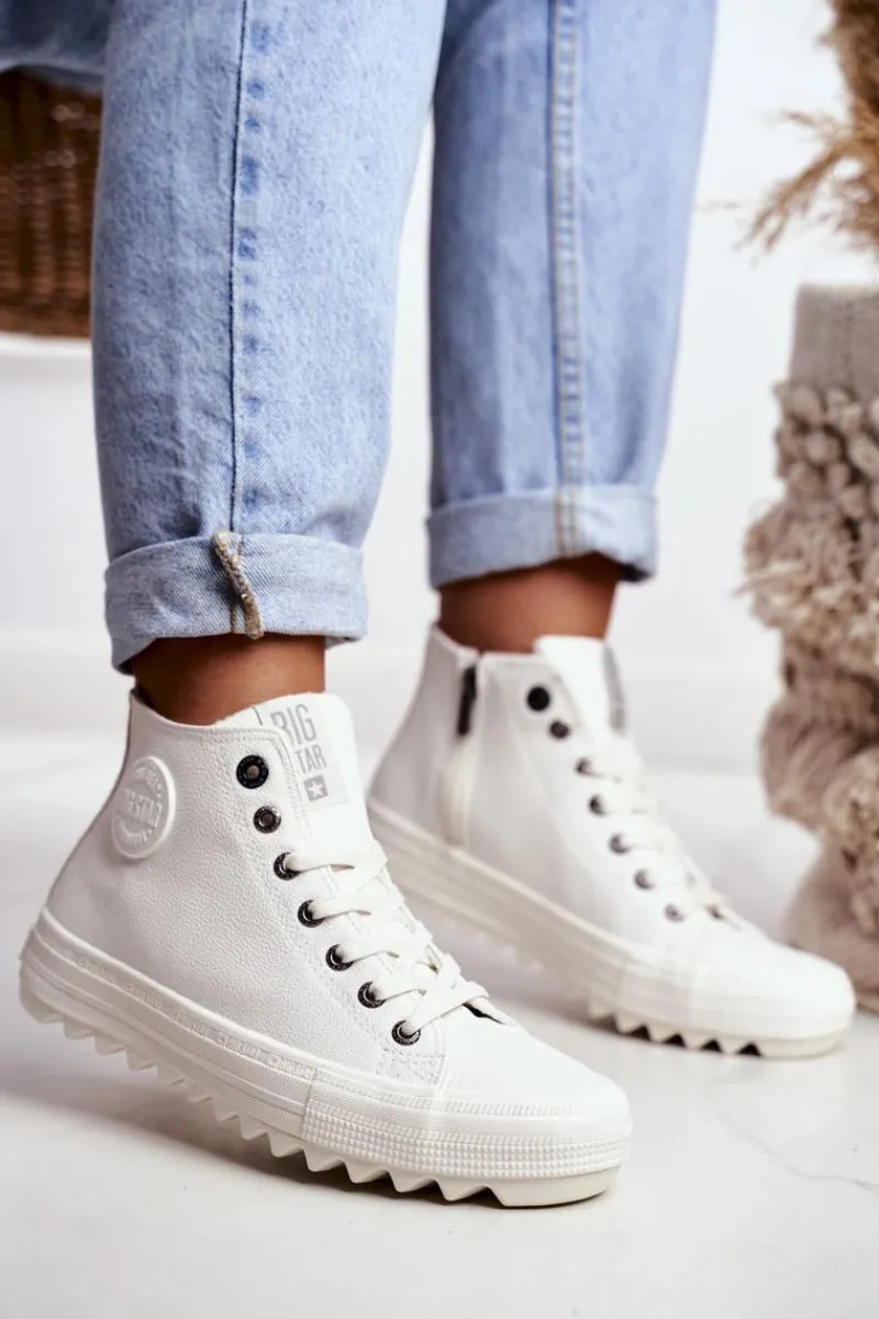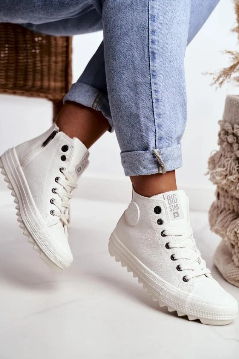 Hot Big Star Shoes Trampki Damskie Big Star Wysokie Ocieplane Białe GG274108