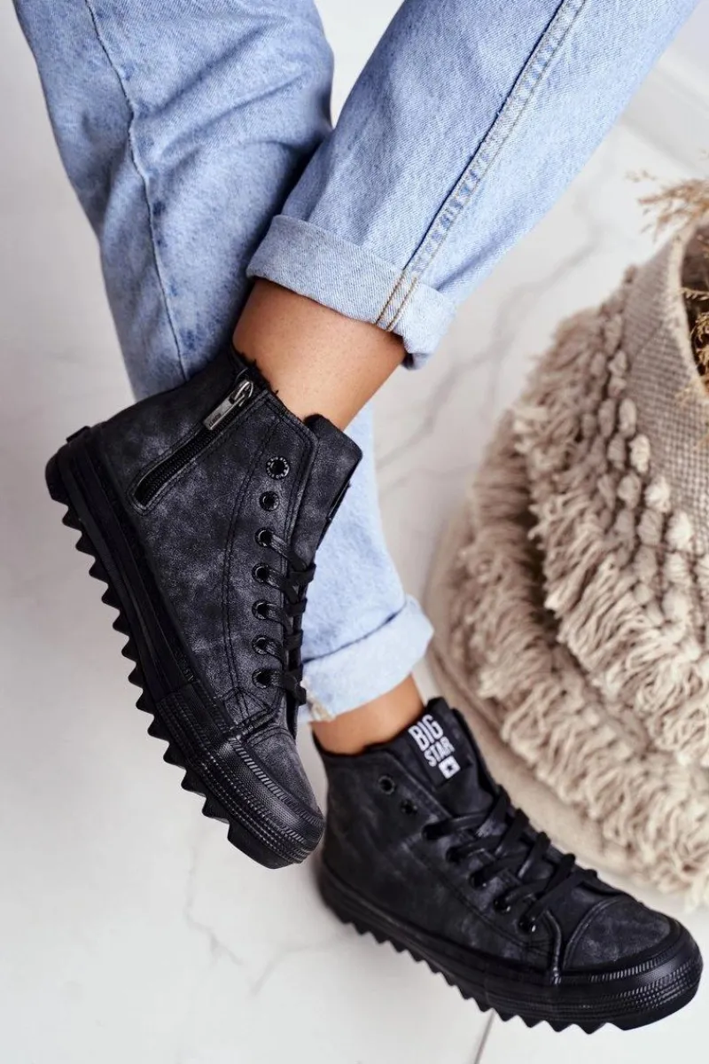 Hot Big Star Shoes Trampki Damskie Big Star Wysokie Ocieplane Czarne GG274069