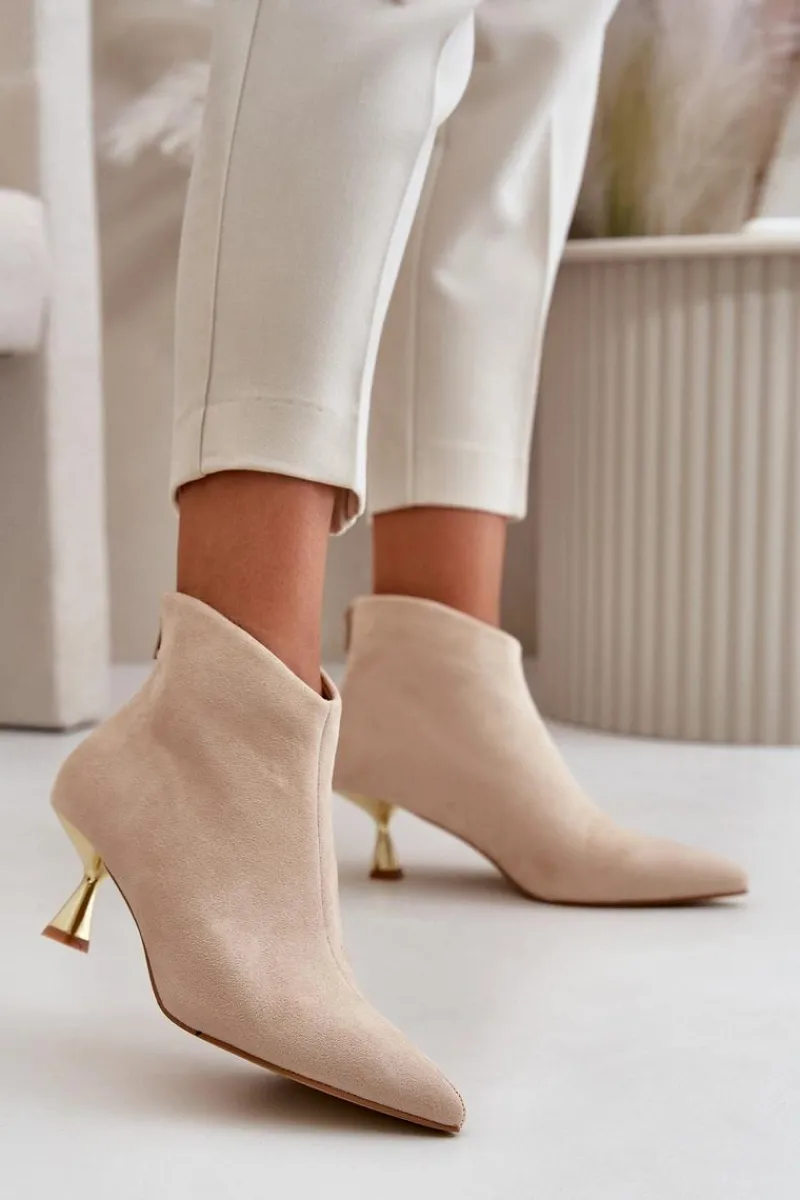 Stylowe botki damskie na ozdobnej szpilce to elegancki dodatek, który przyciąga uwagę swoim wyjątkowym designem. Zapinane na zamek z tyłu, zapewniają wygodę i łatwość zakładania. Noski w szpic dodają wyrafinowanego charakteru, podkreślając kobiecość i smukłość sylwetki. Idealne na specjalne okazje, jak i do codziennych stylizacji, kiedy chcesz dodać sobie odrobinę elegancji. Przy wyborze rozmiaru prosimy sugerować się tabelą rozmiarów.