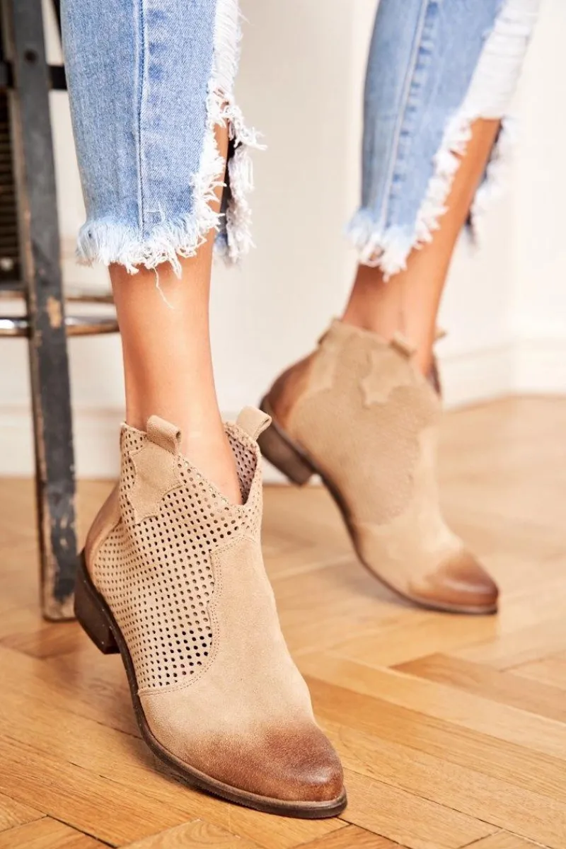 Hot Boto Botki Damskie Welurowe Exquisite Jasno Beżowe 1166