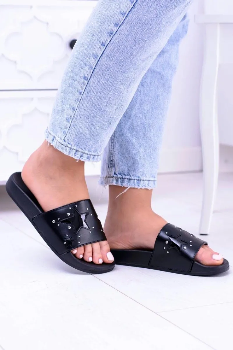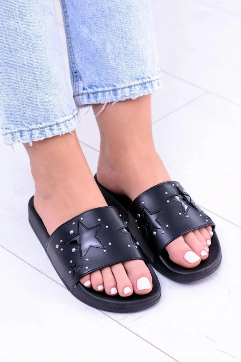 Hot Boto Czarne Damskie Klapki Dżety Gwiazdy Bajela