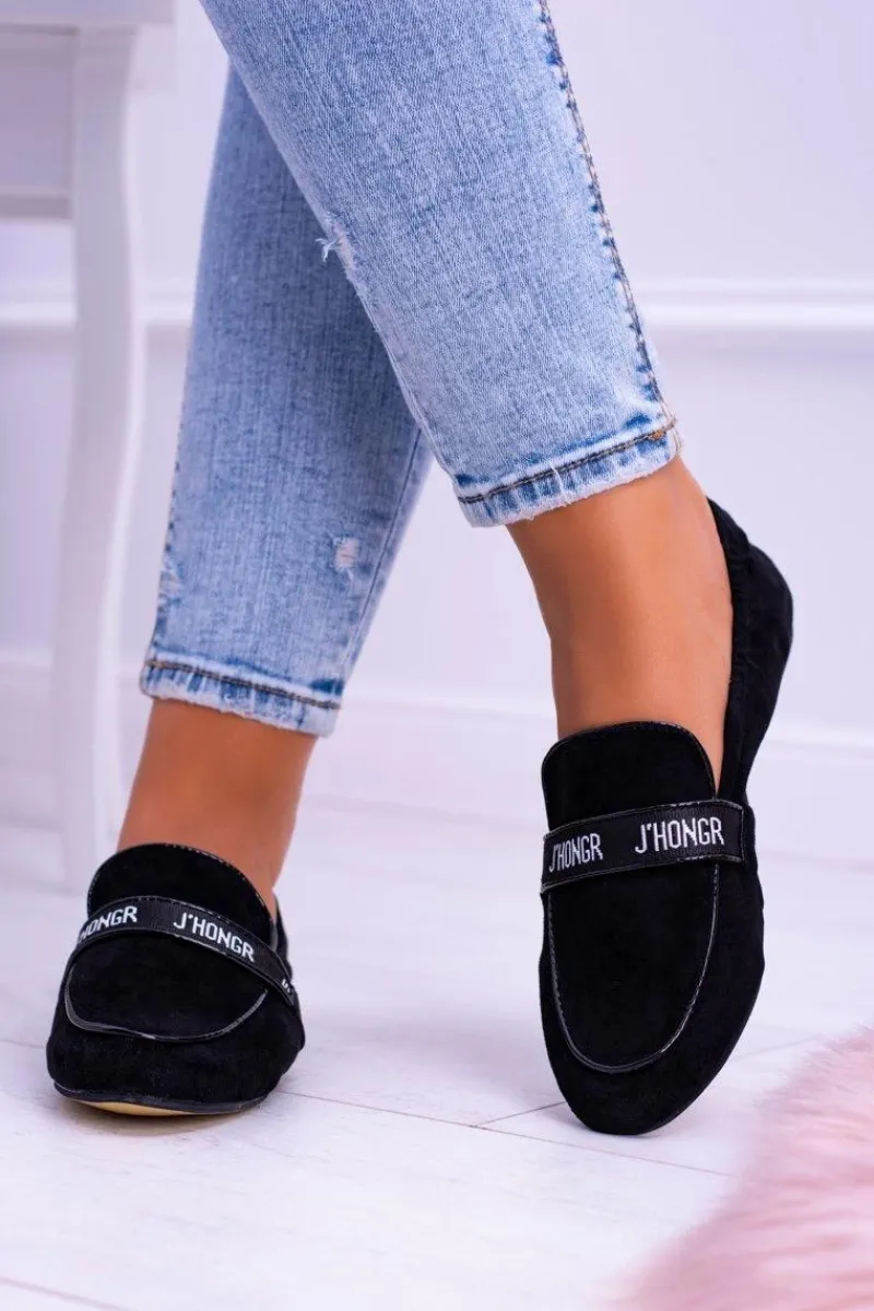 Hot Boto Czarne Mokasyny Damskie Lu Boo Horten