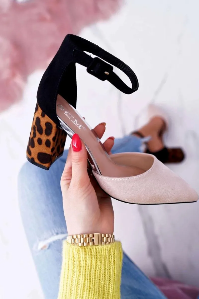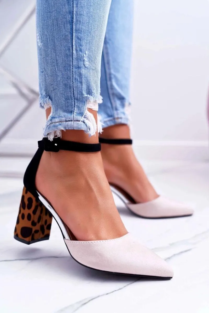 Hot Boto Czółenka Damskie Na Słupku Panterki Beżowe Ferri