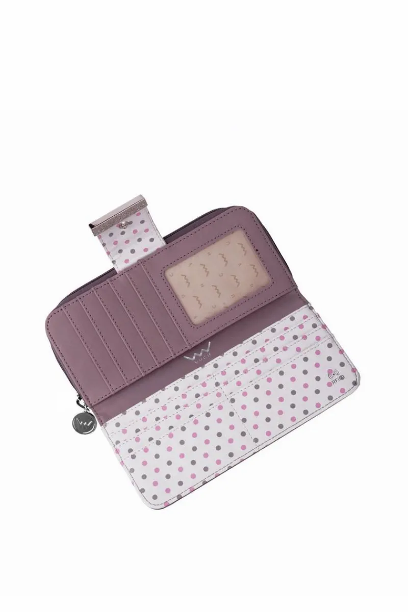 Portfel został wykonany z eko skóry. Jest zapinany na napę oraz suwak. Posiada system ochrony RFID oraz miejsce na zdjęcie. Jest bardzo pojemny, posiada kilka kieszonek na wizytówki. W komorze zapinanej na suwak znajduje się miejsce na banknoty oraz kieszonka zapinana na suwak, w której można umieścić bilony. Koniecznie powinnaś mieć ten portfel!