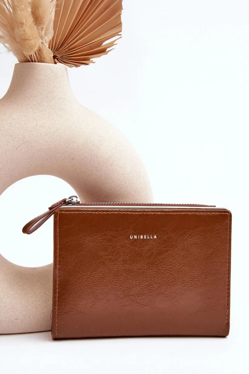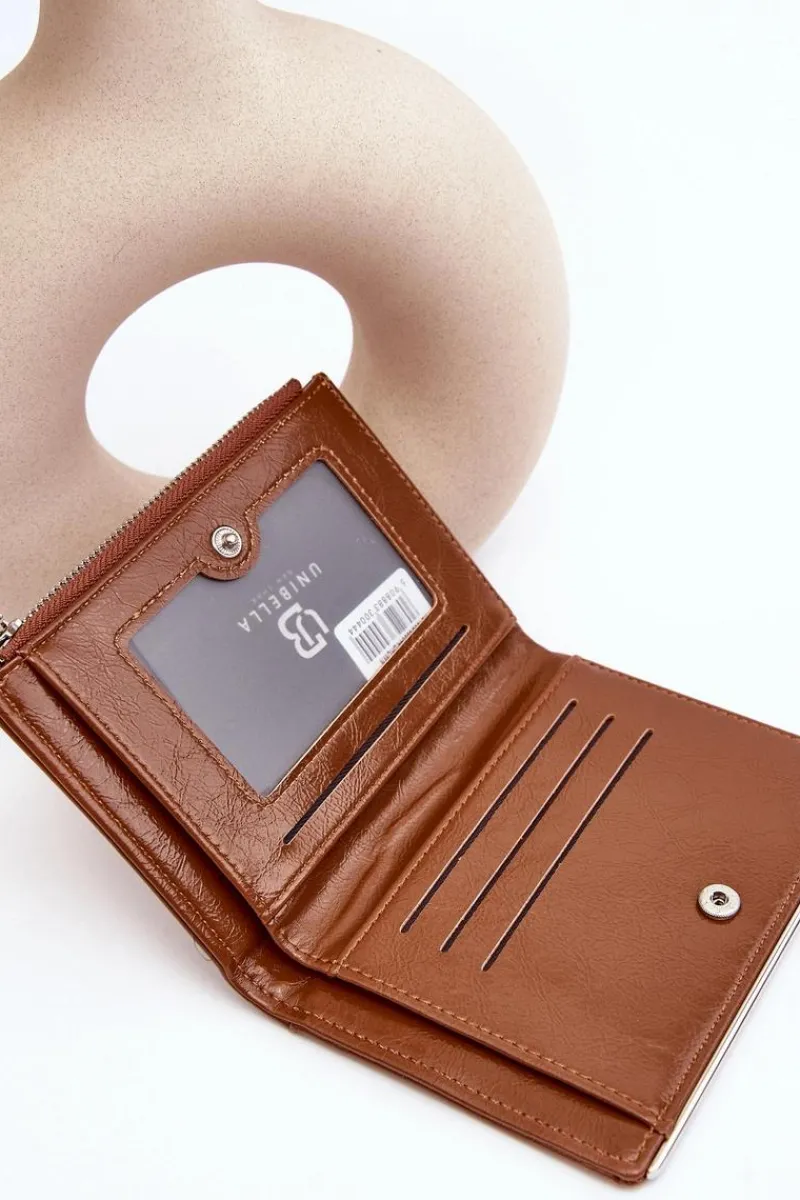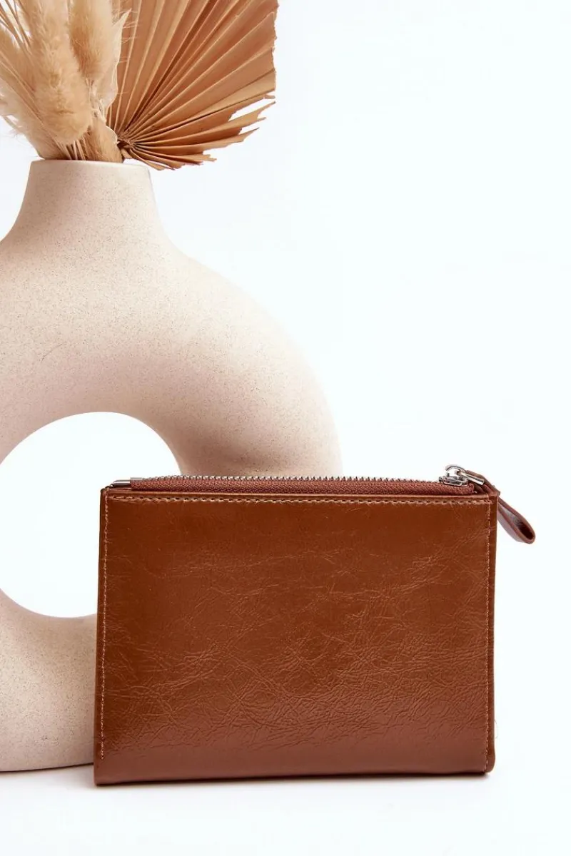 Portfel damski wykonany z połyskującej eko skóry. Zapinany na zatrzask oraz suwak. W środku miejsce na banknoty, karty, fotografię. Model ten posiada osobną kieszeń na monety. Doskonale sprawdzi się jako prezent!