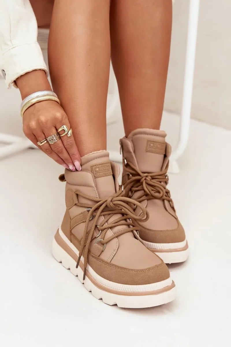 Botki damskie ocieplane to doskonały wybór na zimowe dni. Osadzone na platformie, zapewniają komfort i stabilność podczas chodzenia. Model ten wyposażony jest w sznurowanie oraz dodatkowe zapięcie na zamek, co ułatwia zakładanie i dopasowanie do stopy. Ocieplenie wewnątrz buta gwarantuje ciepło nawet w mroźne dni. Stylowy fason sprawia, że te botki będą świetnym uzupełnieniem każdej zimowej stylizacji. Przy wyborze rozmiaru prosimy sugerować się tabelą rozmiarów.