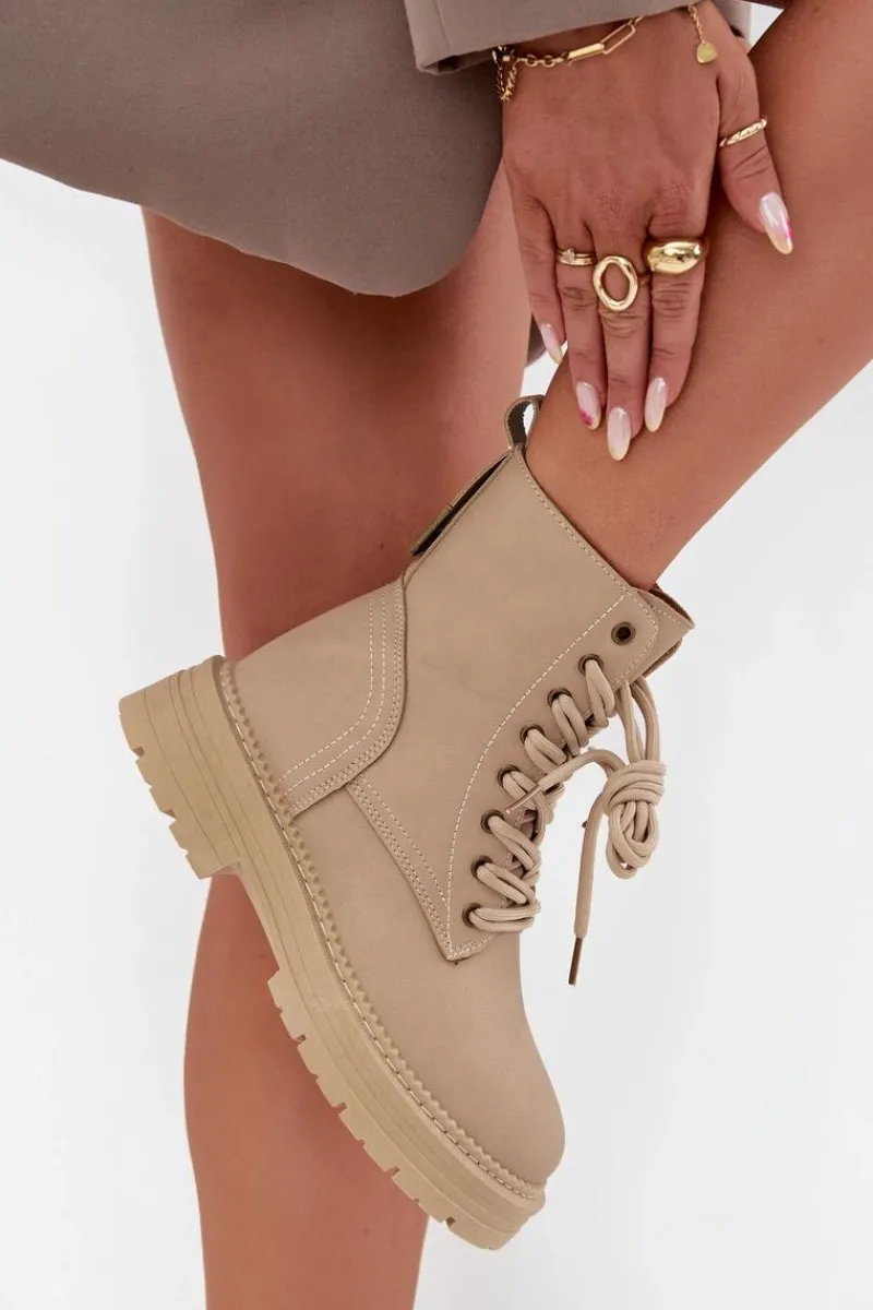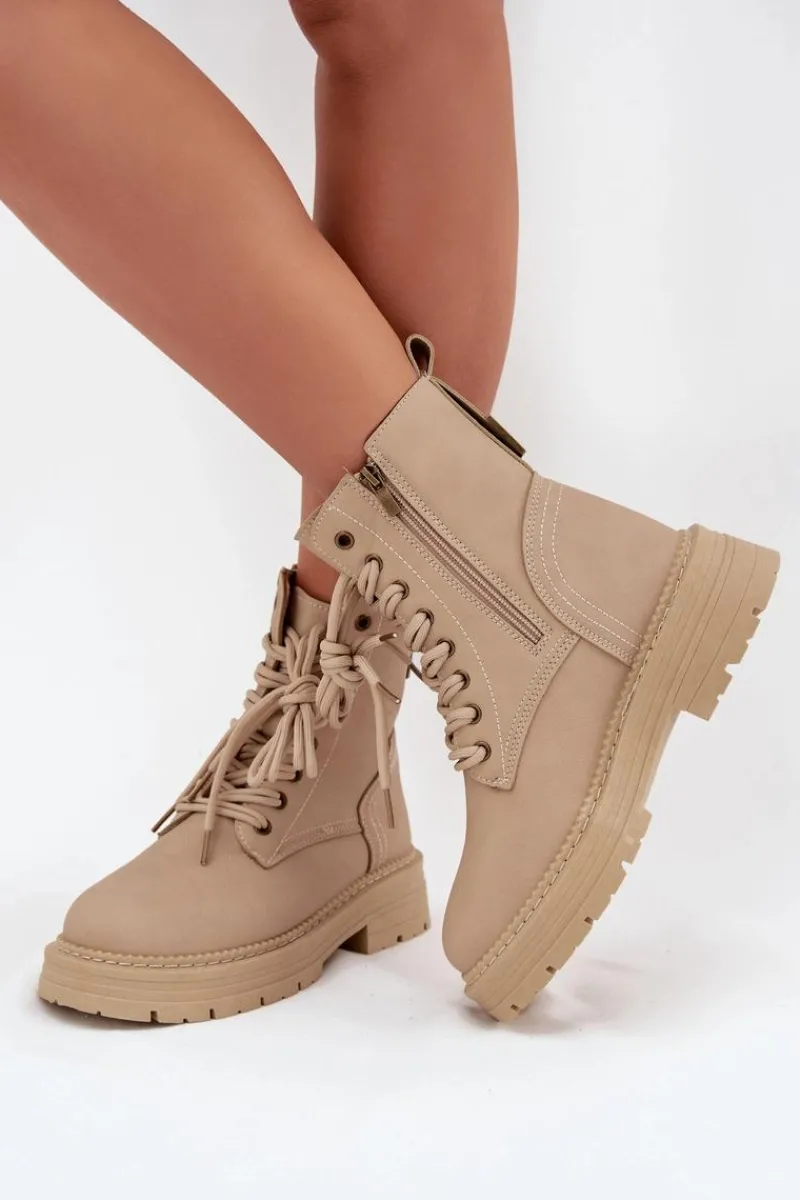 Botki damskie z eko skóry to świetny wybór na chłodniejsze dni. Zapinane na zamek i sznurowane, umożliwiają idealne dopasowanie do stopy. Noski zaokrąglone zapewniają wygodę, a wyjmowana wkładka z pianki, pokryta materiałem, gwarantuje komfort przez cały dzień. Te botki będą doskonałym uzupełnieniem codziennych stylizacji. Przy wyborze rozmiaru prosimy sugerować się tabelą rozmiarów.