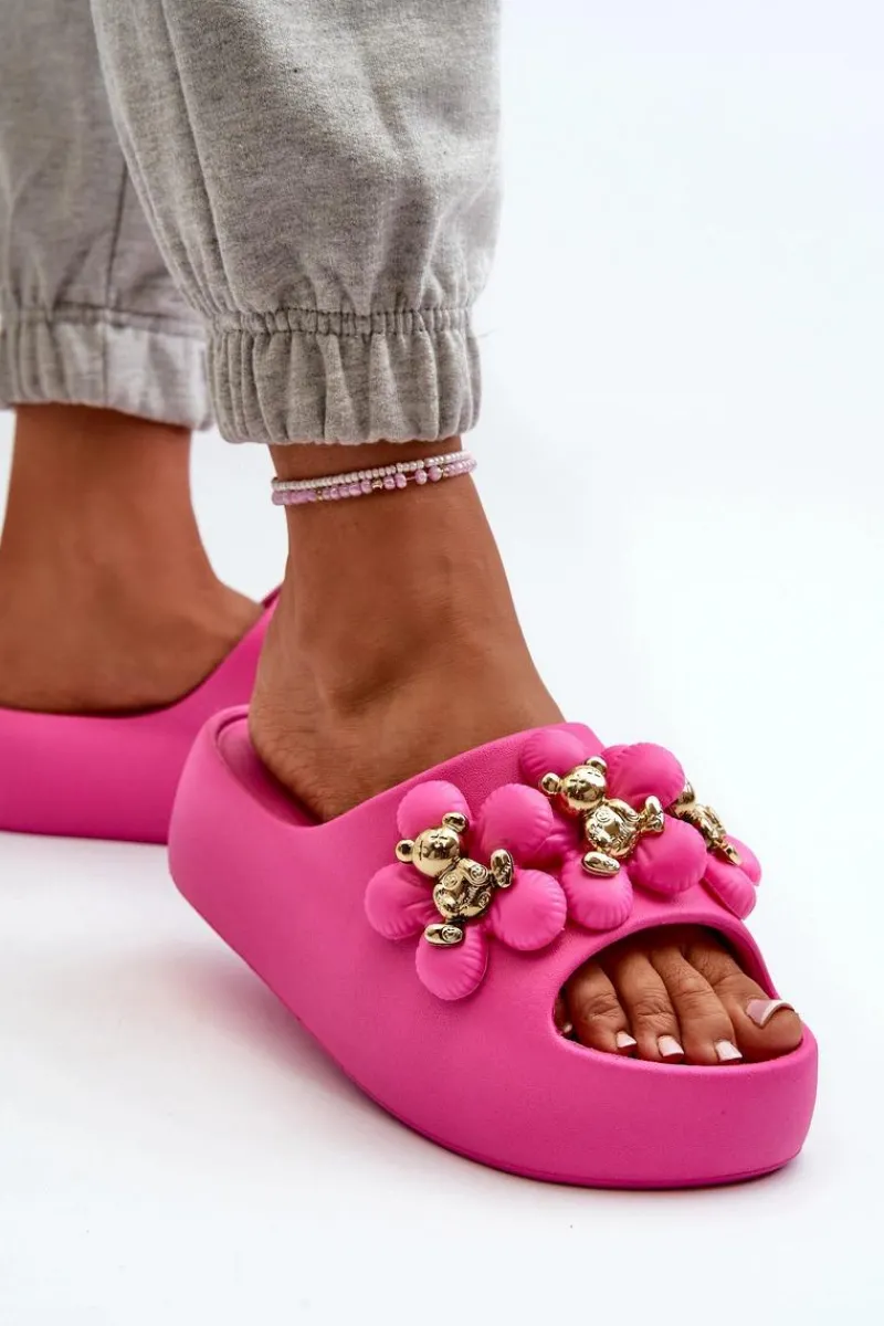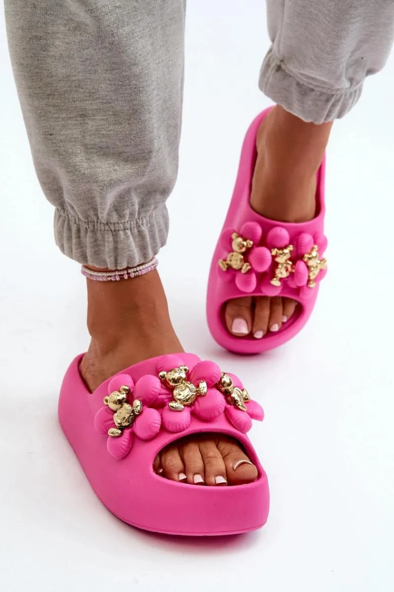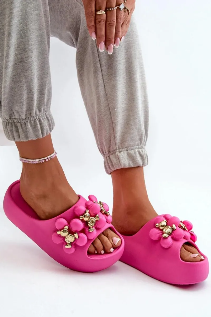 Lekkie damskie klapki wykonane z piankowego tworzywa, idealne na upalne dni. Osadzone na masywnej podeszwie, te klapki zapewniają wygodę i stabilność. Urocze ozdoby dodają im wyjątkowego charakteru, czyniąc je doskonałym wyborem na lato. Przy wyborze rozmiaru prosimy sugerować się tabelą rozmiarów.