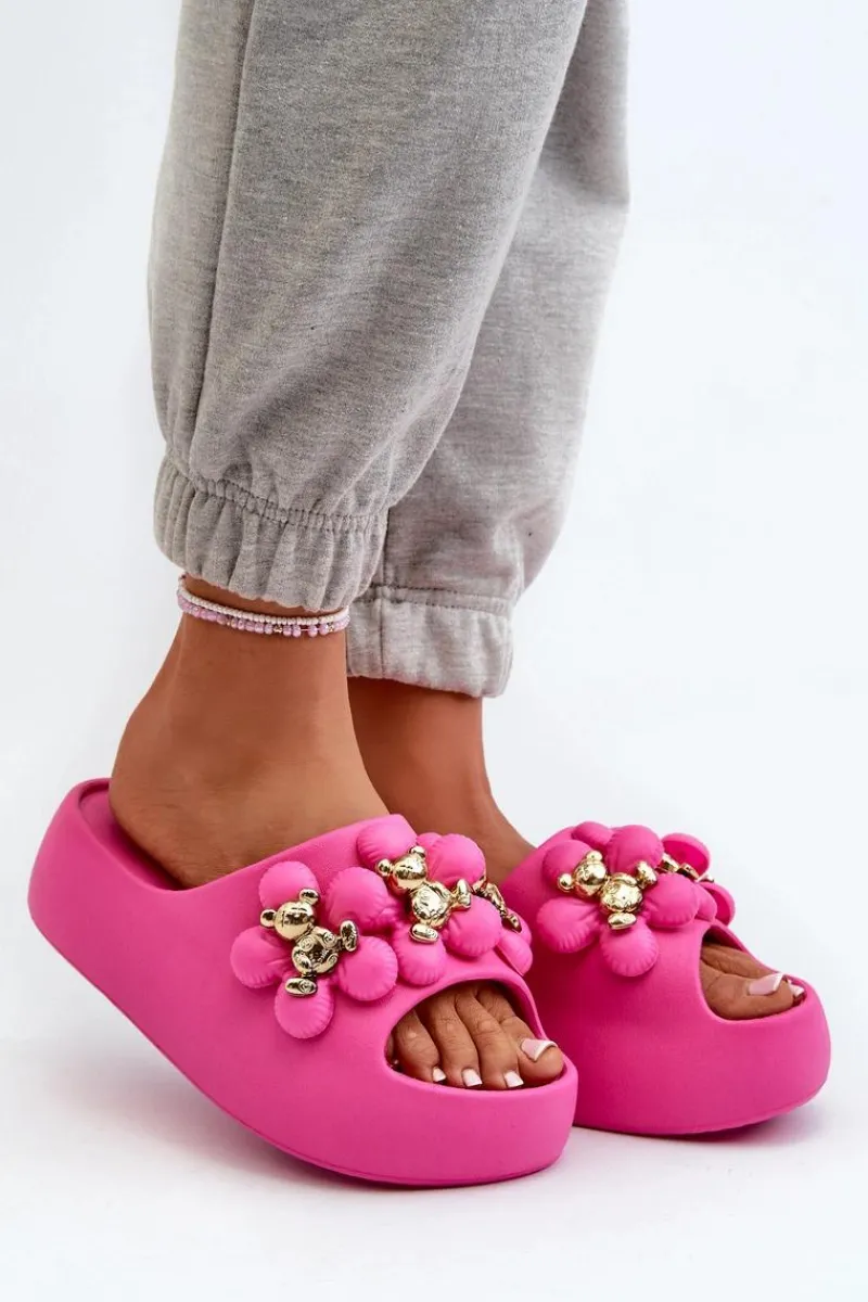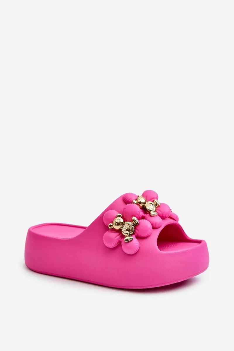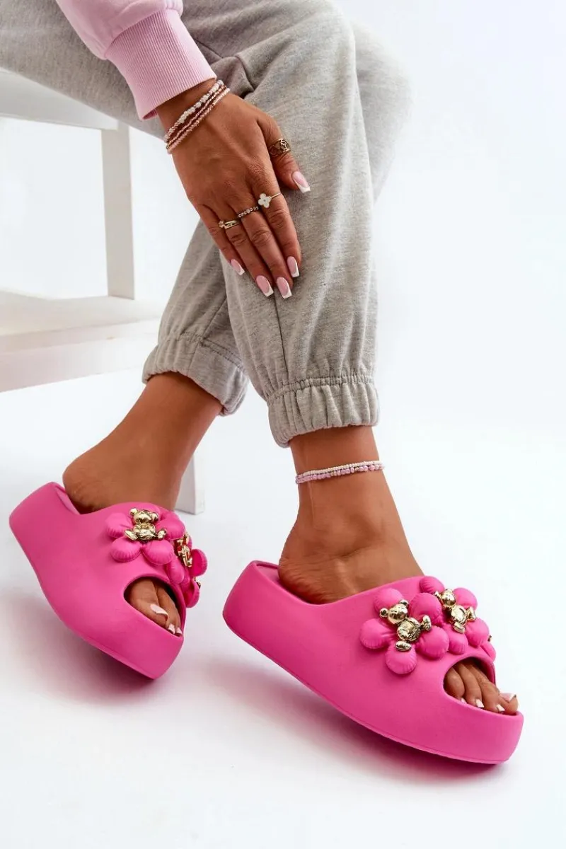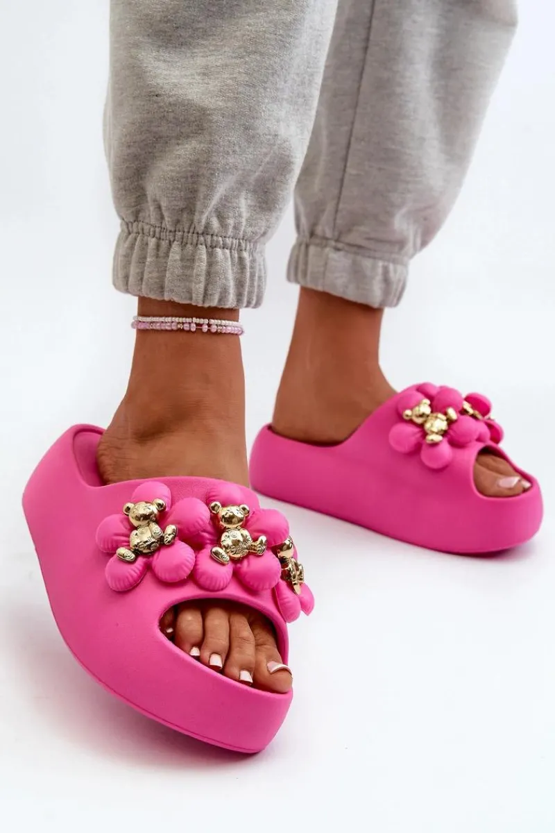 Lekkie damskie klapki wykonane z piankowego tworzywa, idealne na upalne dni. Osadzone na masywnej podeszwie, te klapki zapewniają wygodę i stabilność. Urocze ozdoby dodają im wyjątkowego charakteru, czyniąc je doskonałym wyborem na lato. Przy wyborze rozmiaru prosimy sugerować się tabelą rozmiarów.