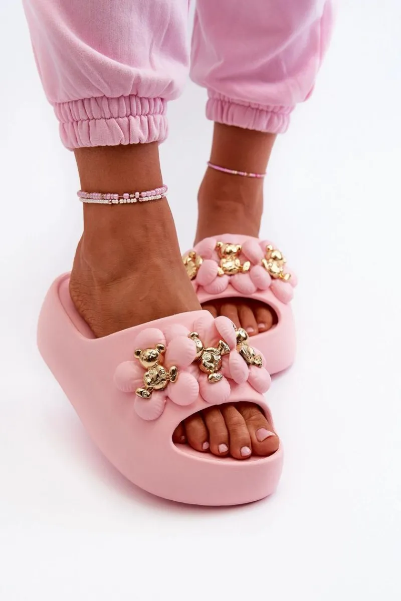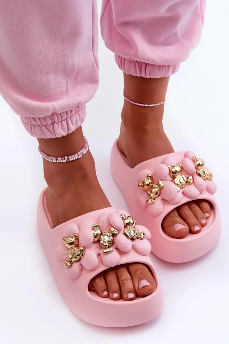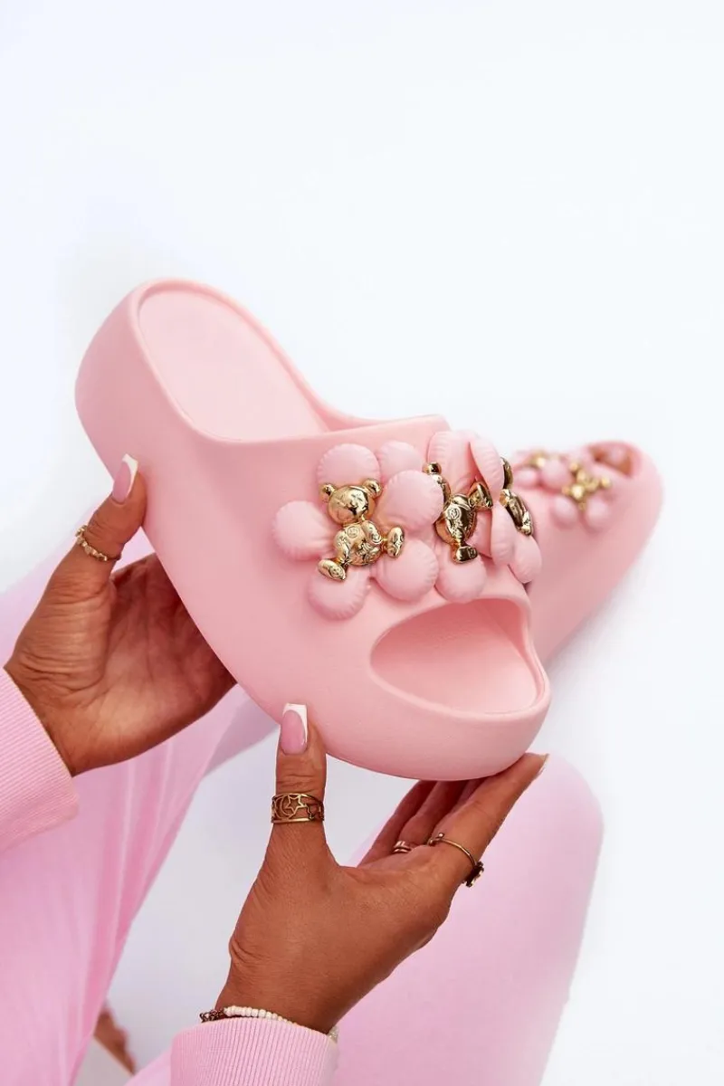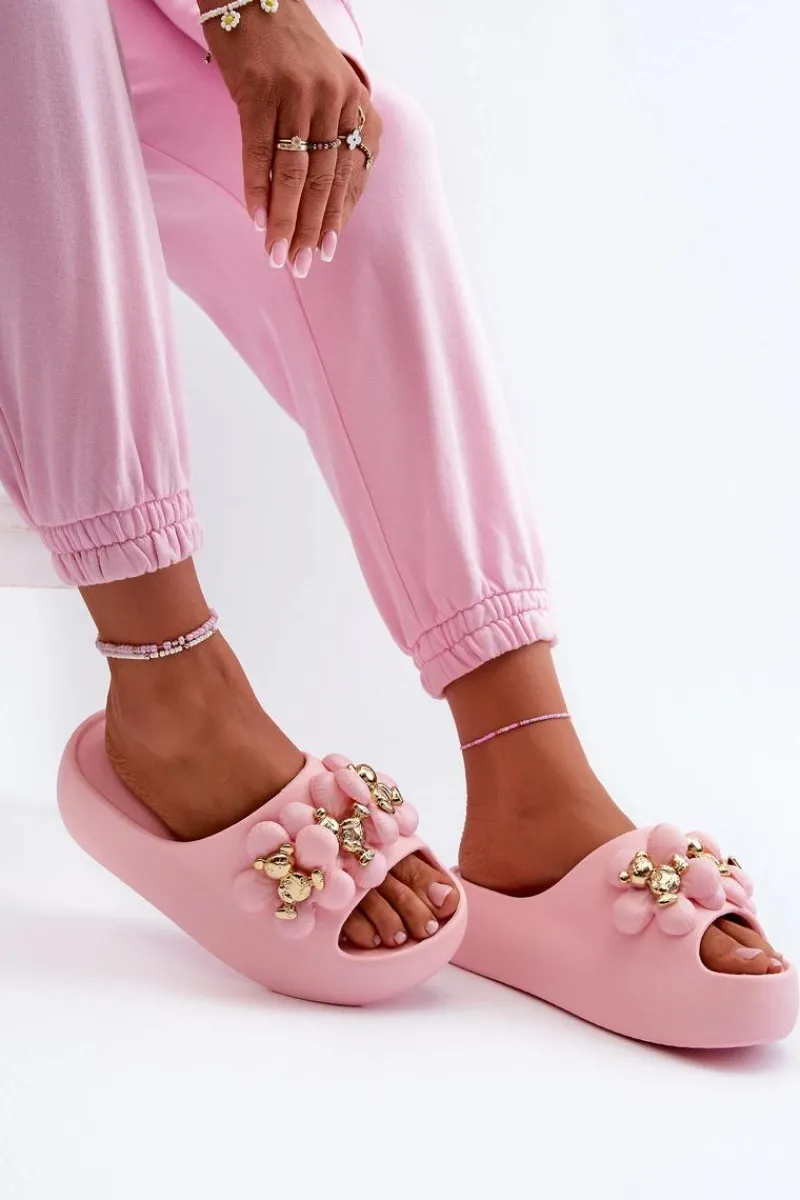 Lekkie damskie klapki wykonane z piankowego tworzywa, idealne na upalne dni. Osadzone na masywnej podeszwie, te klapki zapewniają wygodę i stabilność. Urocze ozdoby dodają im wyjątkowego charakteru, czyniąc je doskonałym wyborem na lato. Przy wyborze rozmiaru prosimy sugerować się tabelą rozmiarów.