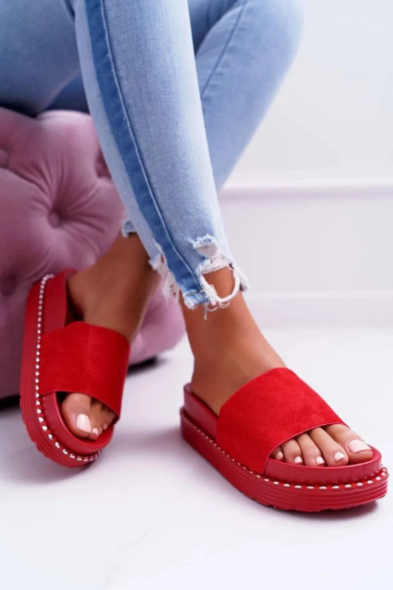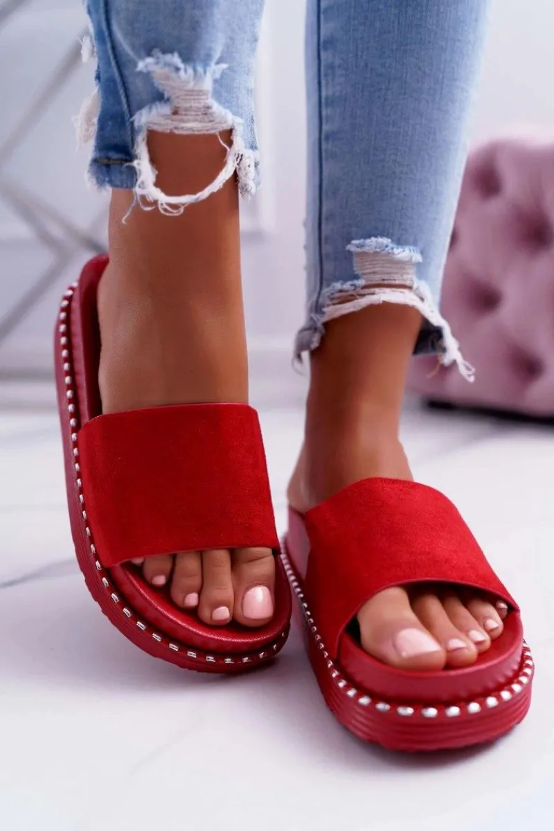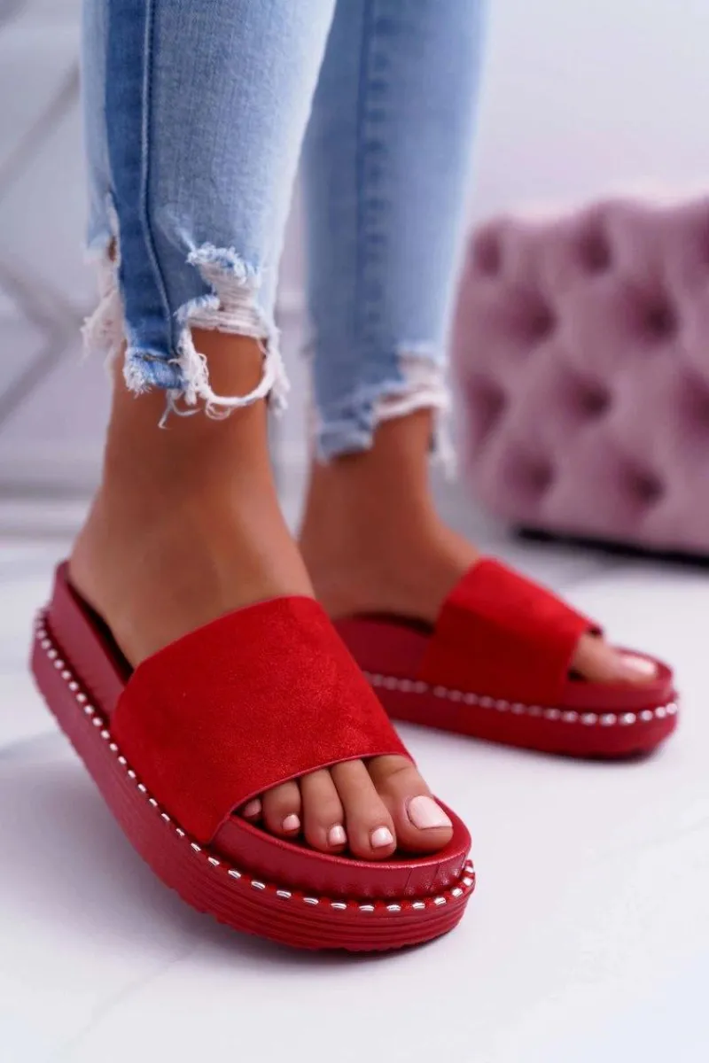 Hot Boto Damskie Klapki Wysokie Czerwone Kadela