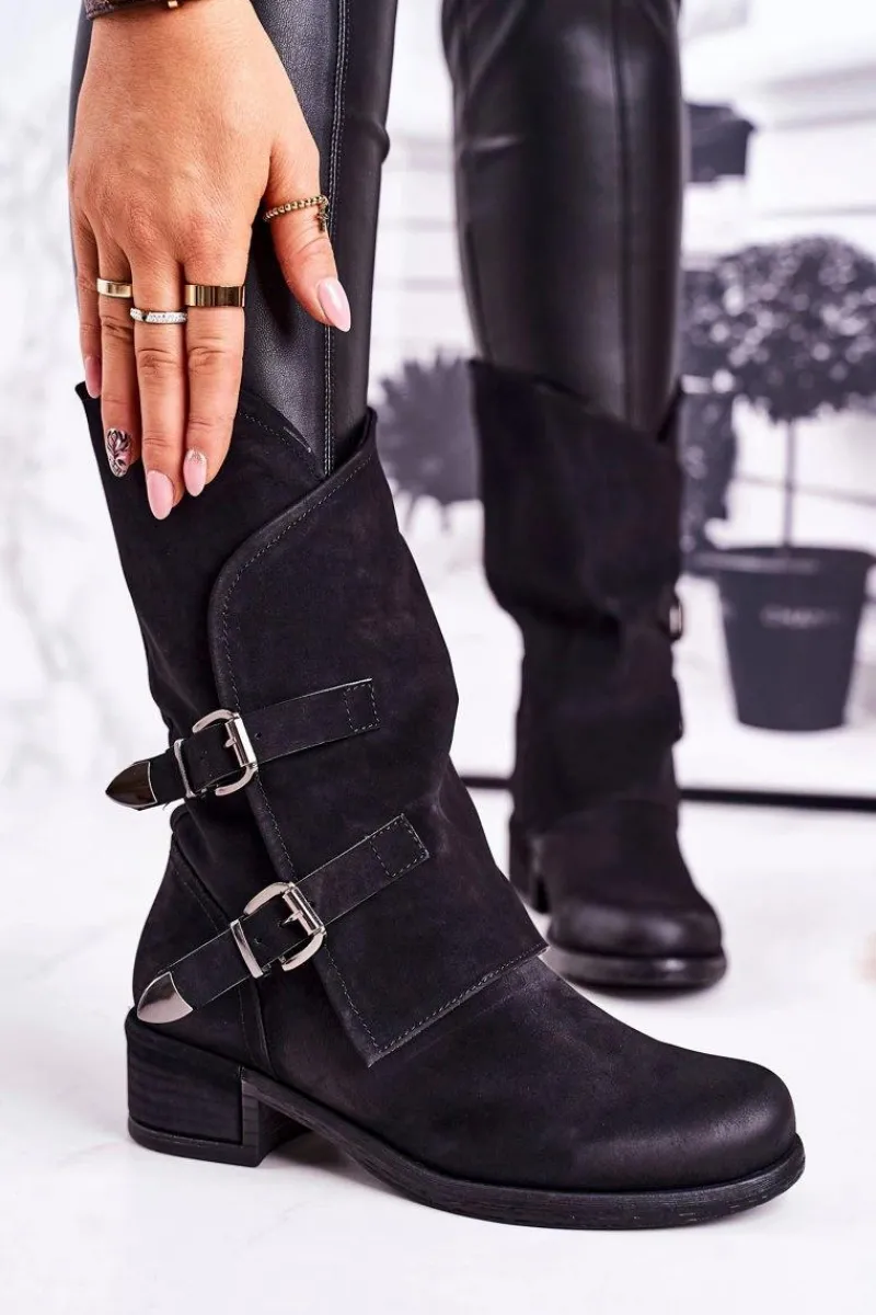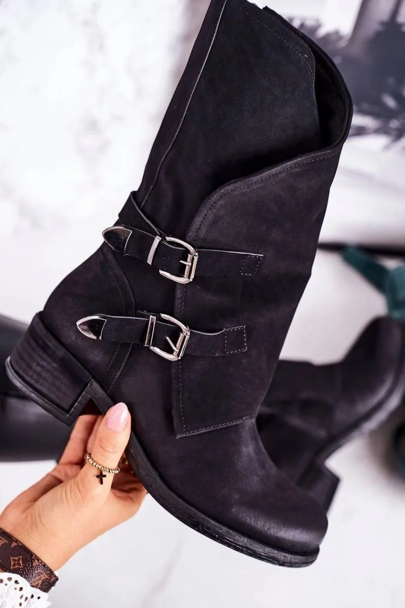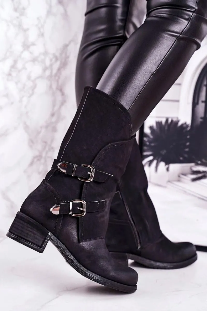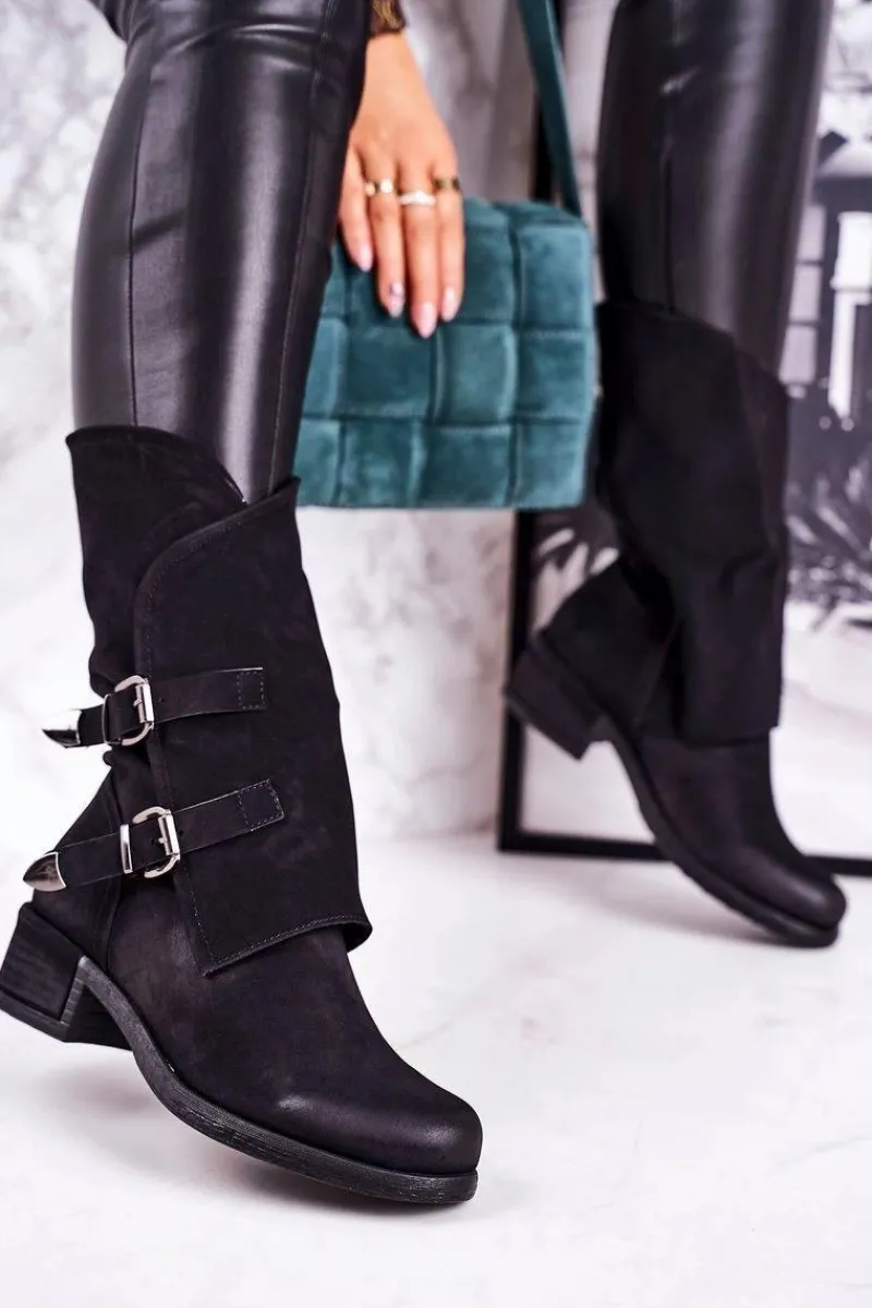 Hot Boto Damskie Ocieplane Botki Z Klamrami Czarne Cassidy