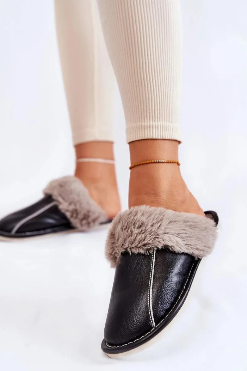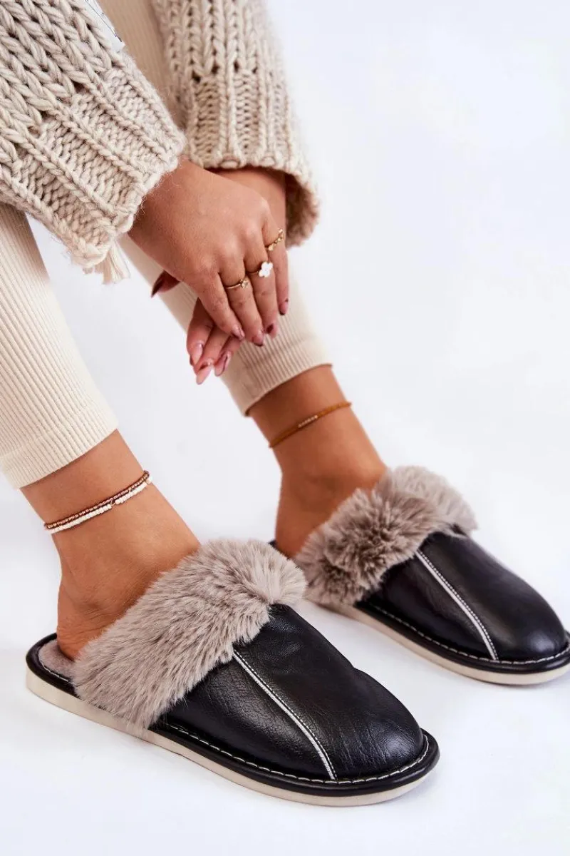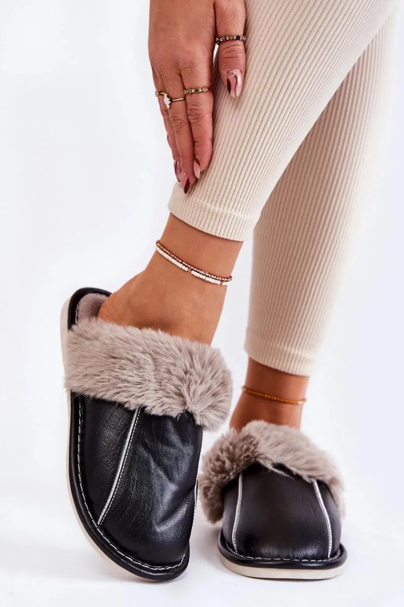 Damskie papcie zostały wykonane z wierzchu eko skóry z obszyciem z eko futerka. Dodatkowo posiadają przeszycia na przodzie. Miękka wkładka jest również ocieplana i zapewni komfort i wygodę podczas użytkowania. Podeszwa została wykonana z elastycznego tworzywa. Model klasyczny, wsuwany. Koniecznie powinnaś je mieć! Przy wyborze rozmiaru prosimy sugerować się tabelą rozmiarów.
