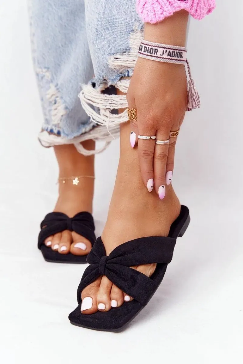 Hot Boto Damskie Welurowe Klapki Czarne Vanilla Sky