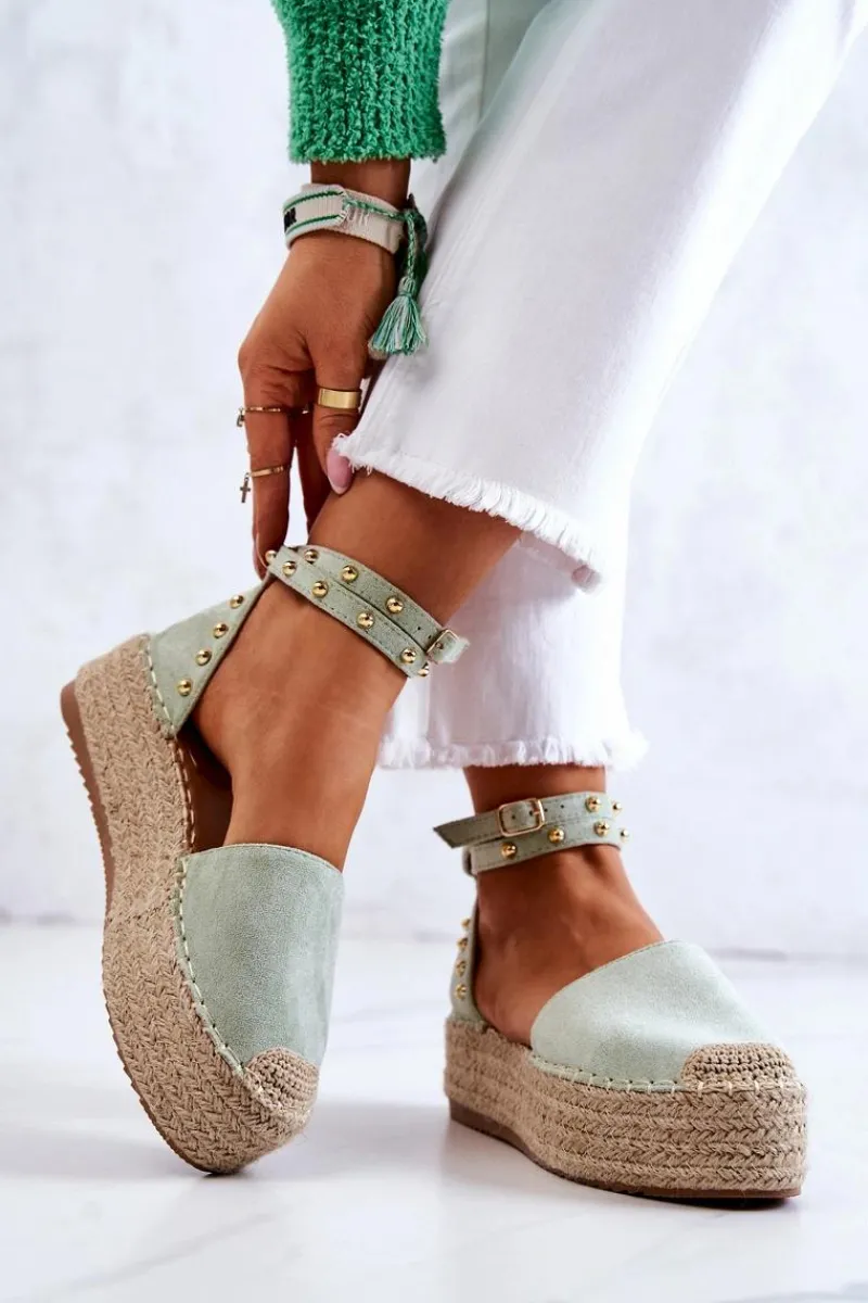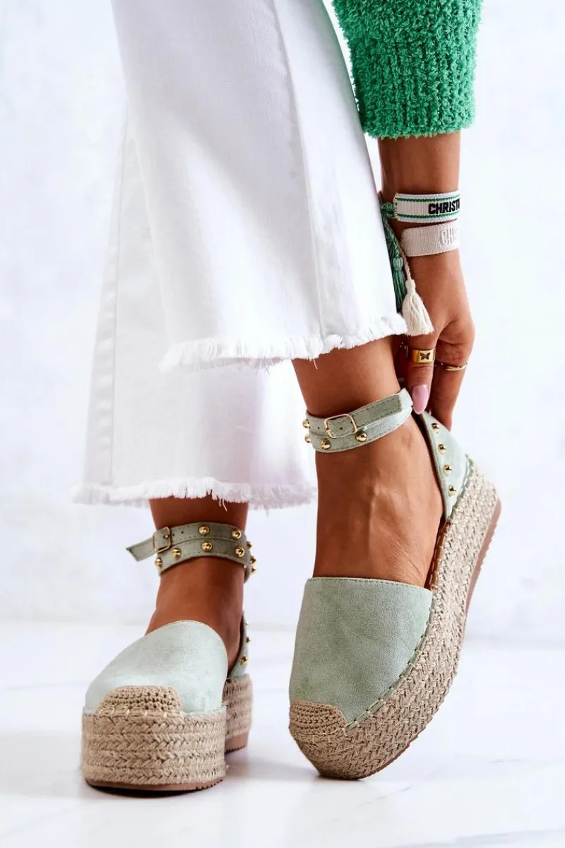 Ten model skradnie serca niejednej miłośniczki espadryli! Jesteśmy tego pewni! Buty te zostały stworzone z myślą o kobietach ceniących sobie komfort oraz gustowny styl. Wysoka stabilna platforma ozdobiona plecionką delikatnie uniesie Twoją sylwetkę. Na pasku oraz cholewce znajdują się dżety. Espadryle posiadają regulowany pasek zapinany na sprzączkę. Przy wyborze rozmiaru prosimy sugerować się tabelą rozmiarów.
