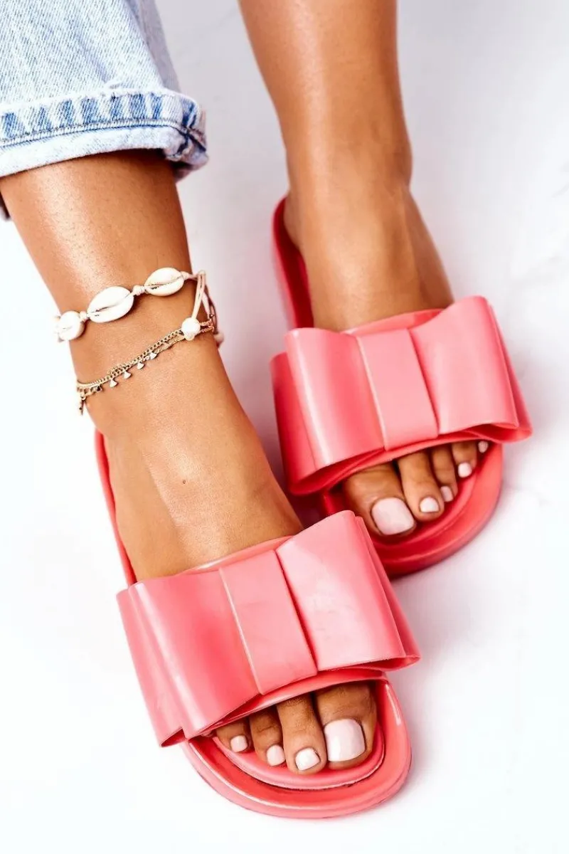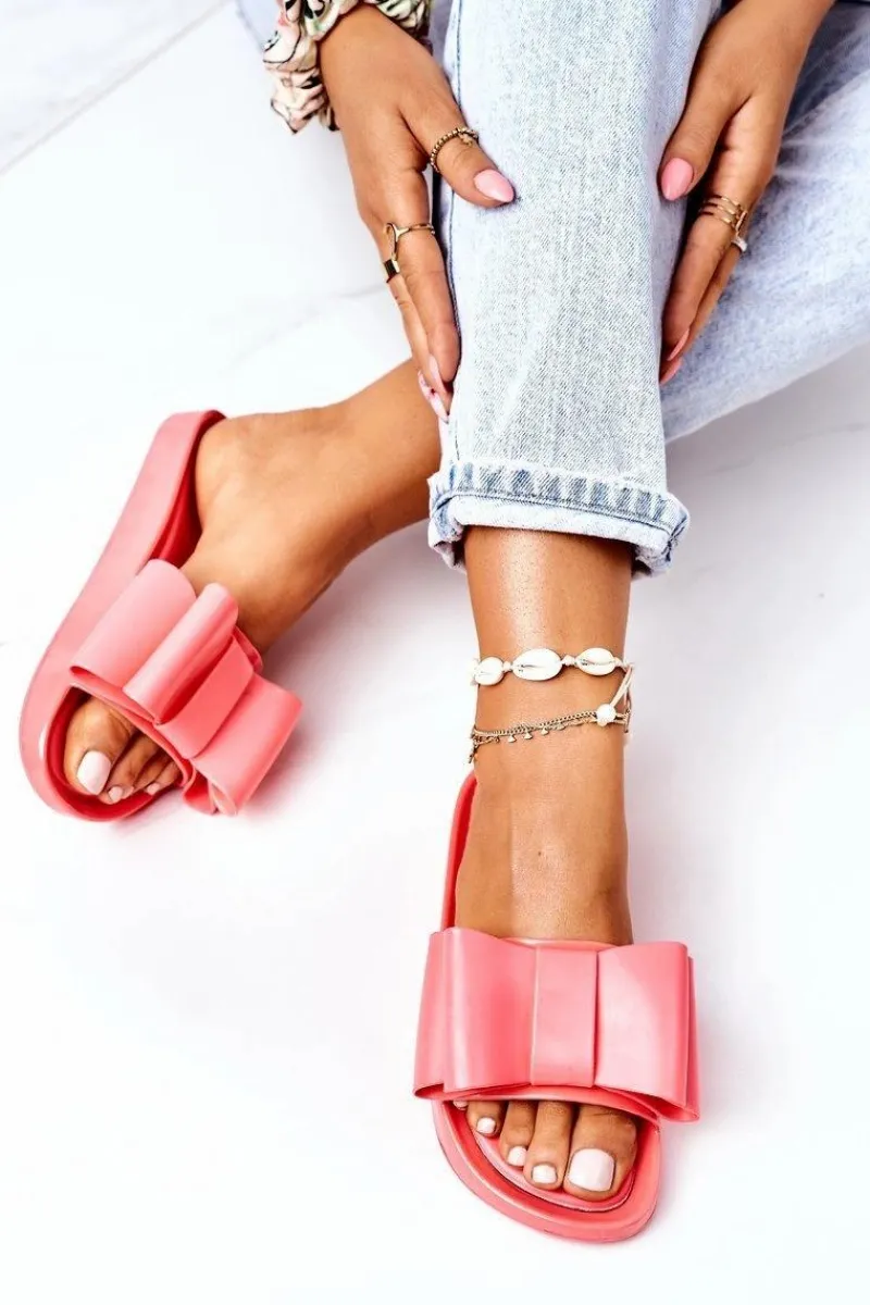 Gumowe klapki damskie z kokardą. Buty posiadają miękką wkładkę ze skóry ekologicznej. Przy wyborze rozmiaru prosimy sugerować się tabelą rozmiarów. 2 Gatunek. Na łączeniu podeszwy widoczny jest klej.