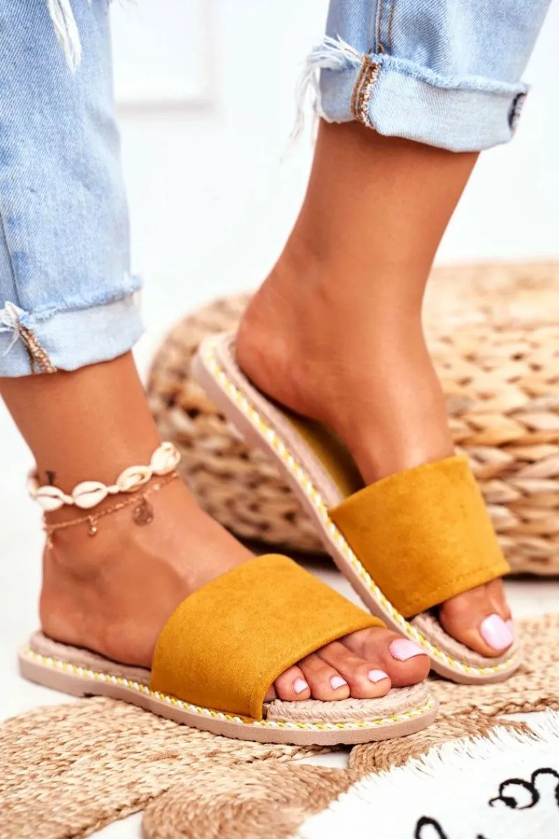 Hot Boto Klapki Damskie Klasyczne Zamszowe Żółte Look At Me