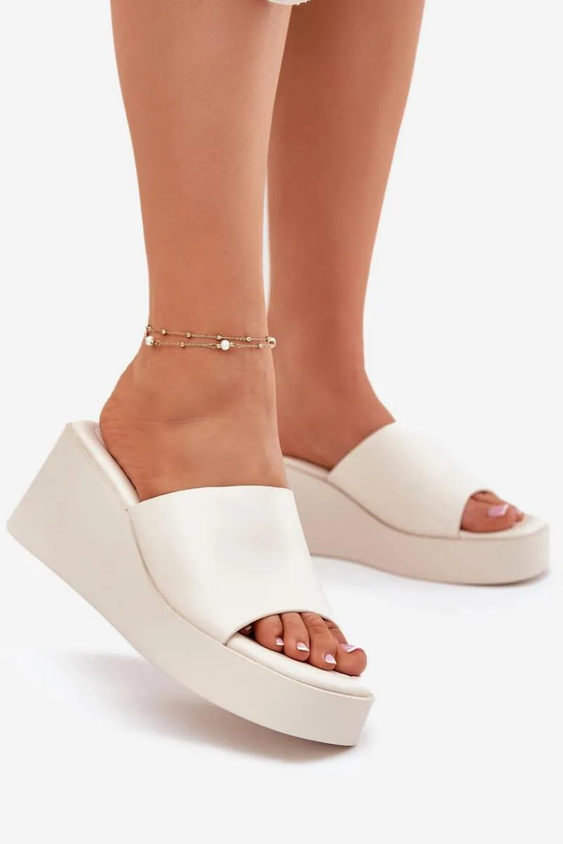Damskie klapki wykonane z eko skóry. Osadzone na koturnie. Miękka wkładka zapewnia komfort noszenia przez cały dzień, niezależnie od okazji. Klapki świetnie sprawdzą się zarówno w zestawieniu z letnią sukienką, jak i z materiałowymi spodniami, dodając stylu każdej stylizacji. Idealne na co dzień oraz na wyjścia ze znajomymi! Przy wyborze rozmiaru prosimy kierować się tabelą rozmiarów.