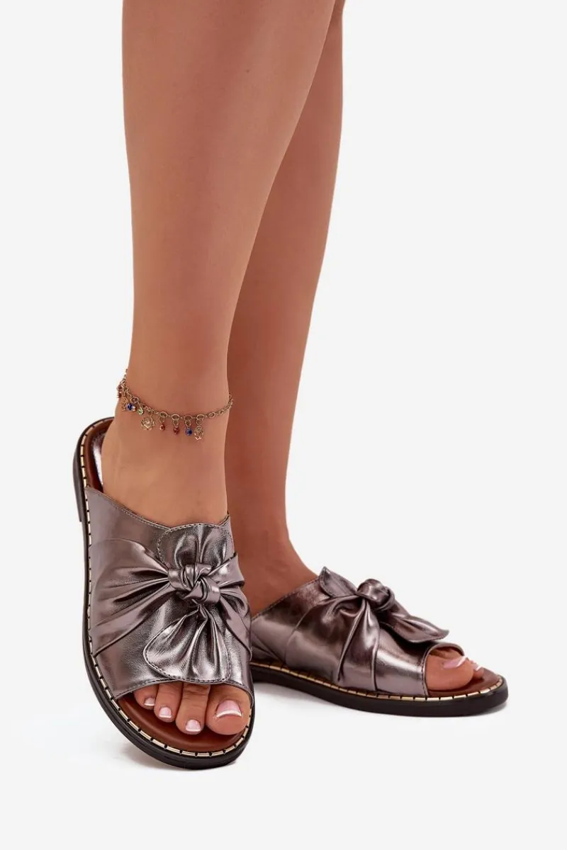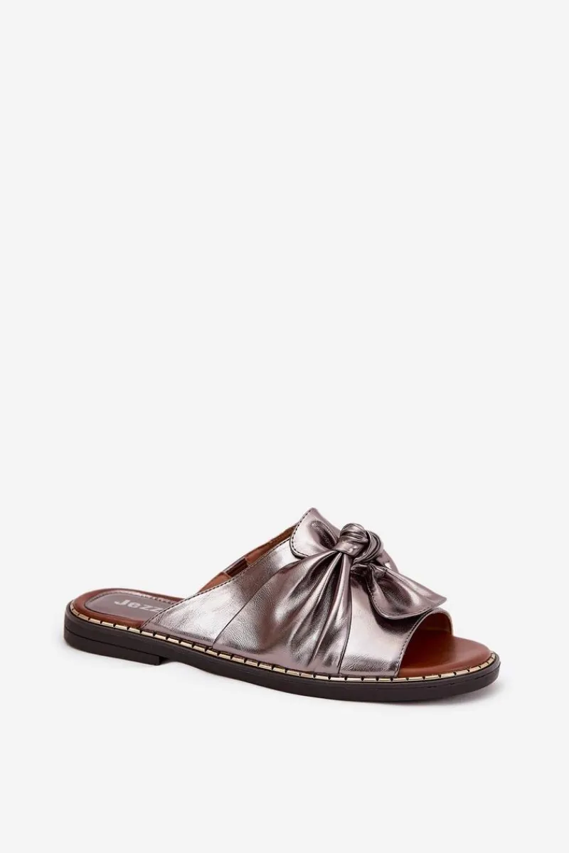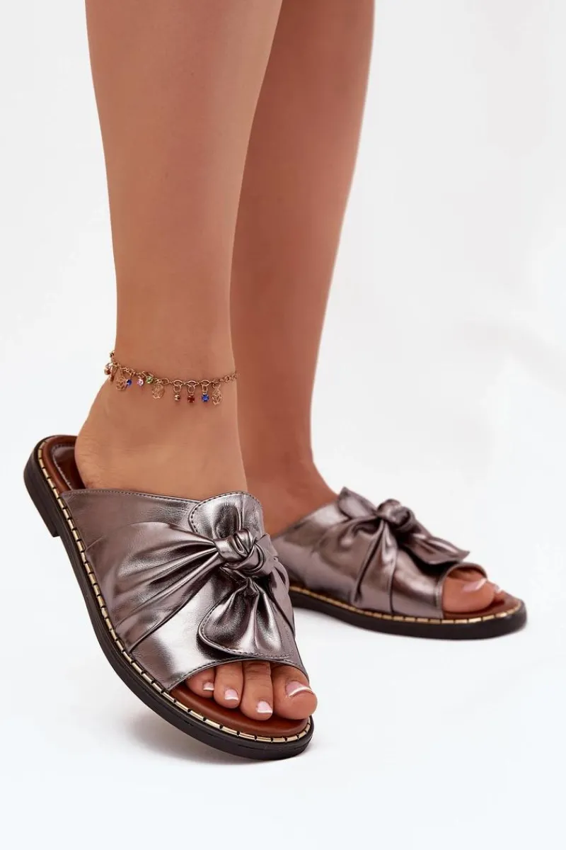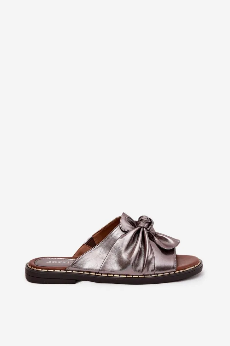 Hot Boto Klapki Damskie Na Płaskim Obcasie Grafitowe Nelvira Srebrny