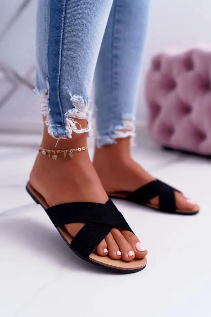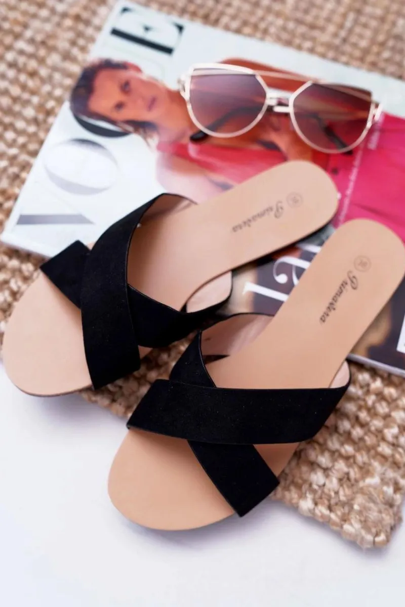 Hot Boto Klapki Damskie Zamszowe Czarne Fenefe