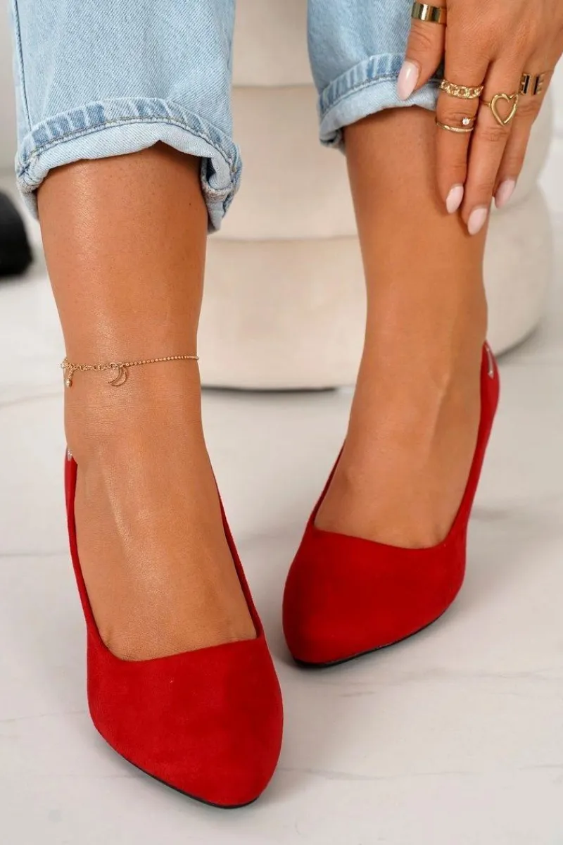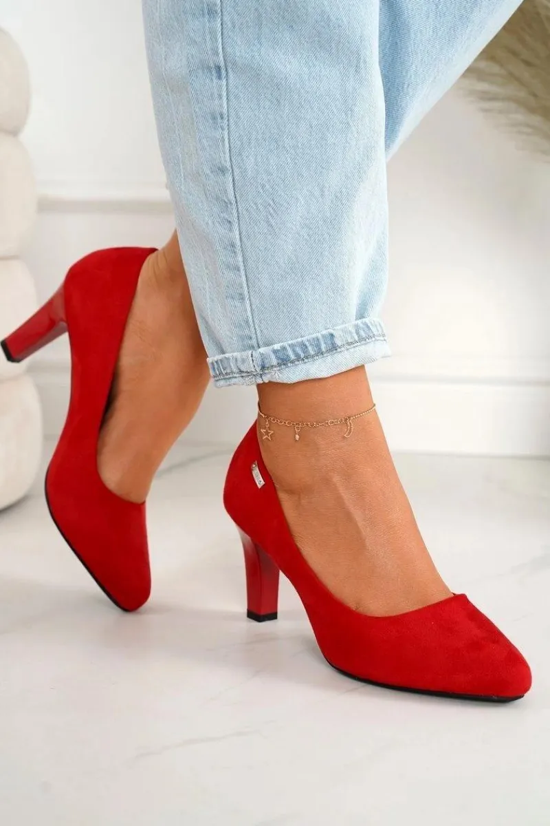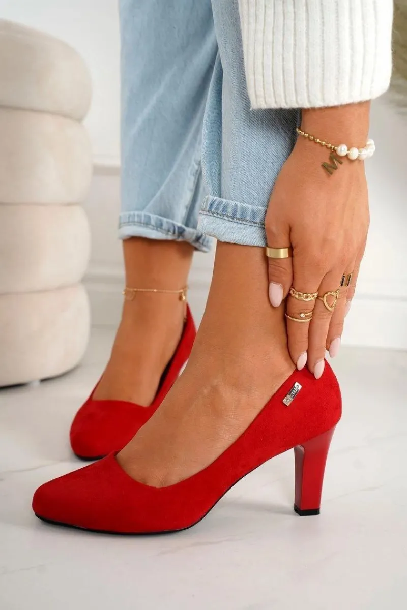 Hot Boto Klasyczne Czółenka Na Słupku Zamszowe Czerwone Eleanor