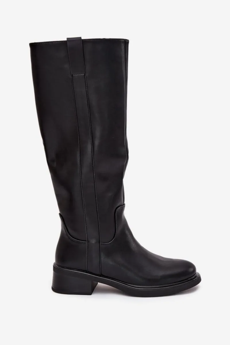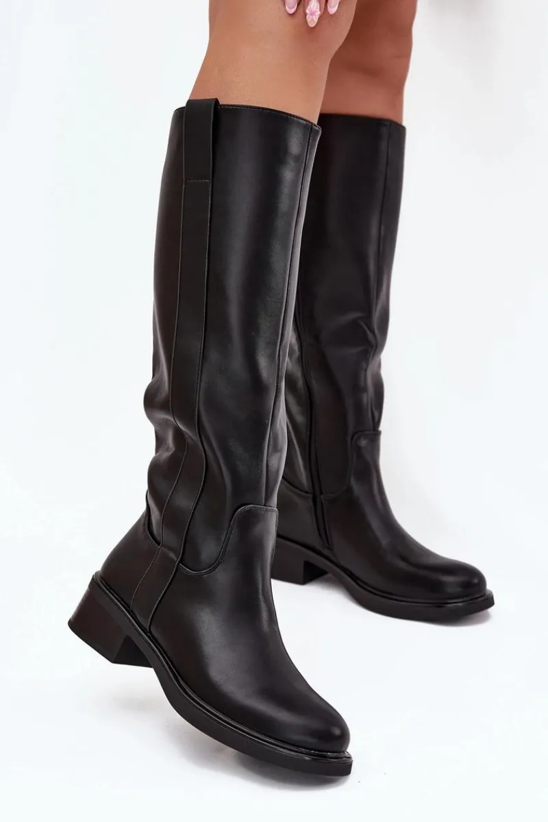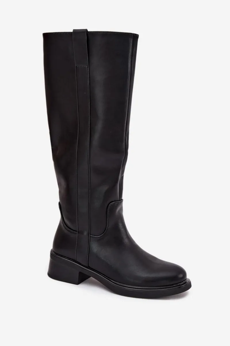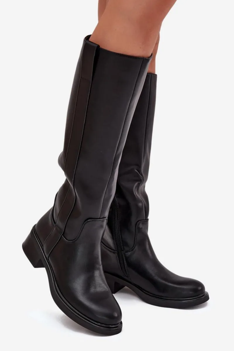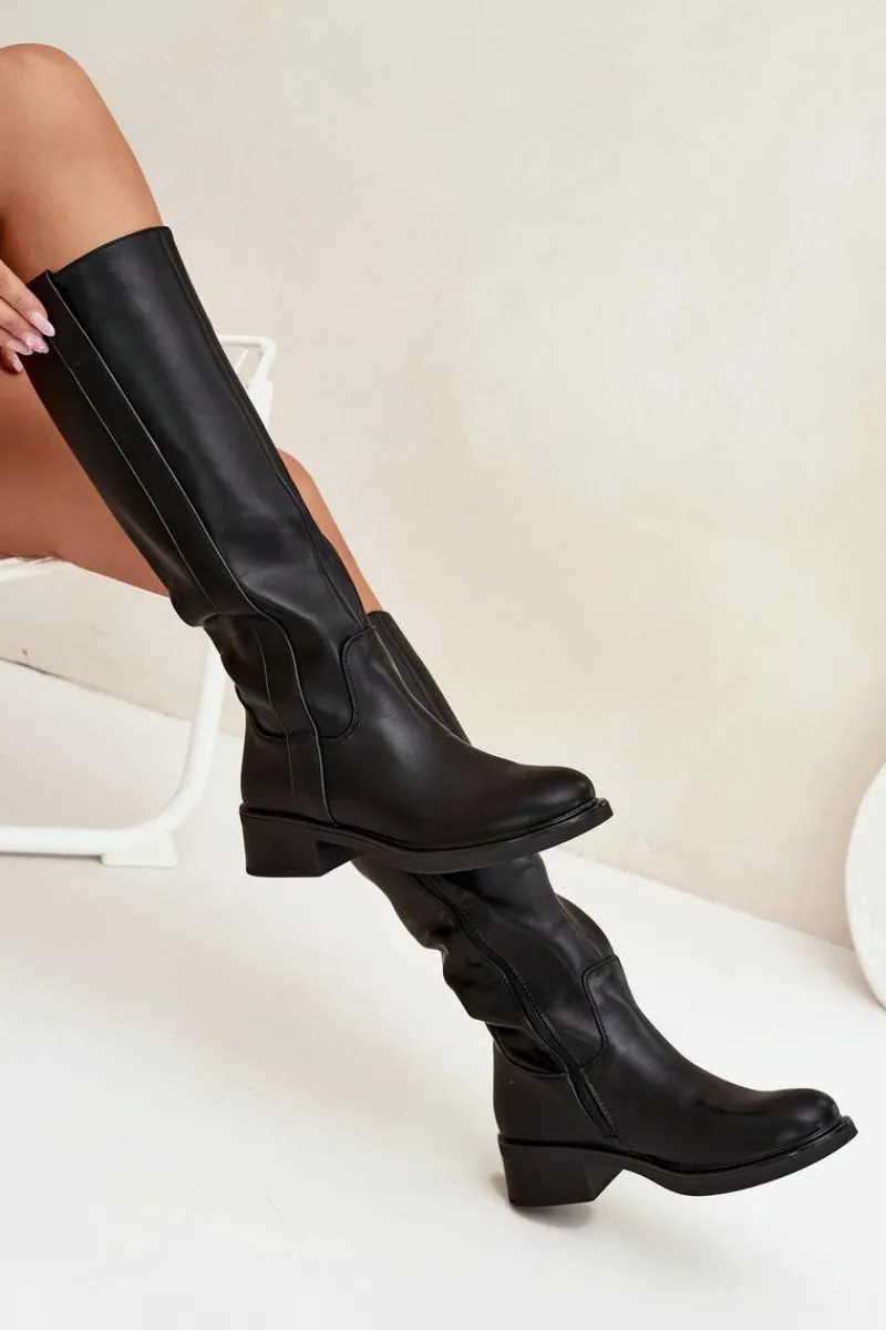 Kozaki oficerki damskie z eko skóry, osadzone na niskim obcasie w formie klocka, to połączenie klasyki z komfortem. Cholewka sięga przed kolano. Zapinane na zamek, co ułatwia ich zakładanie. Ocieplane kocem obuwniczym. Idealne do codziennych stylizacji, doskonale komponują się z sukienkami, spódnicami i spodniami. Przy wyborze rozmiaru prosimy sugerować się tabelą rozmiarów.