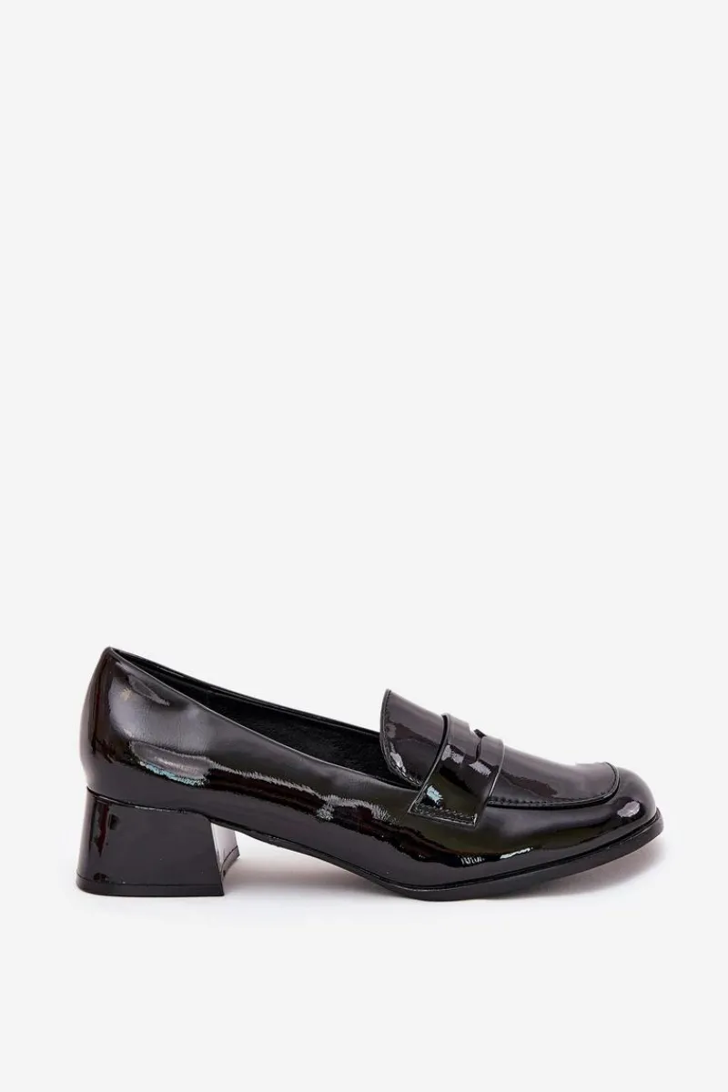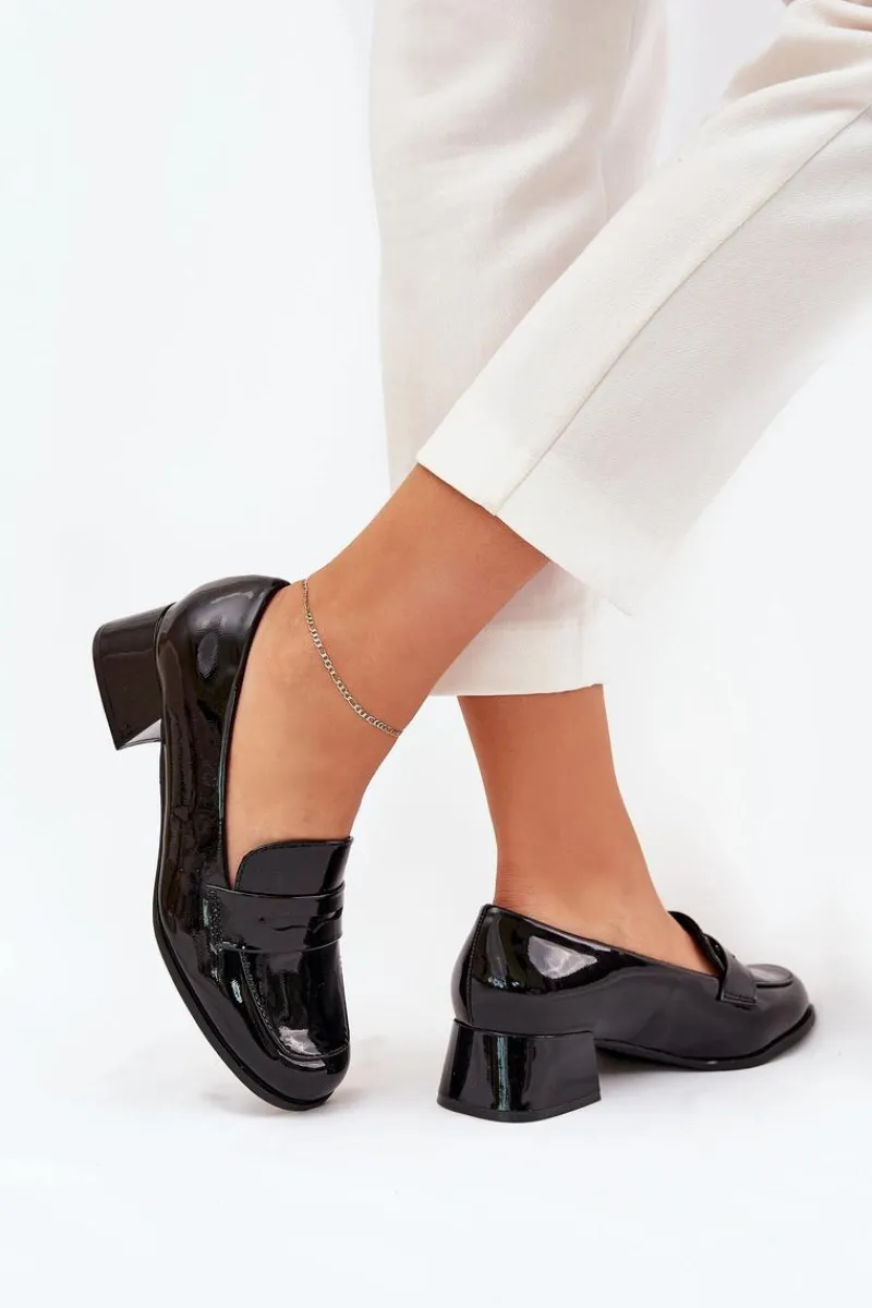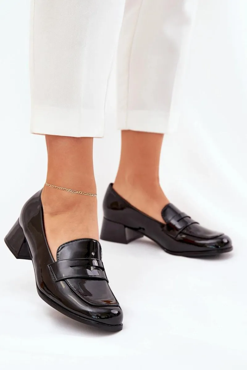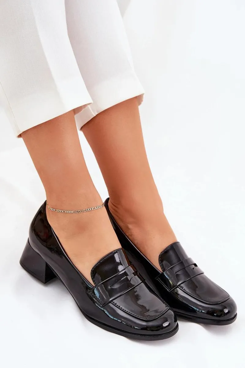 Czółenka z lakierowanej eko skóry, osadzone na niskim obcasie. Noski zaokrąglone zapewniają komfort przez cały dzień, a miękka wkładka dodaje dodatkowej wygody. Z przodu znajduje się paseczek z wycięciem. Te czółenka będą doskonałym wyborem na co dzień, pasując do eleganckich oraz casualowych stylizacji. Przy wyborze rozmiaru prosimy kierować się tabelą rozmiarów