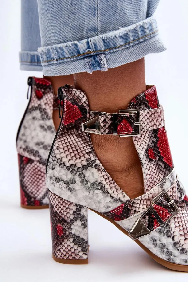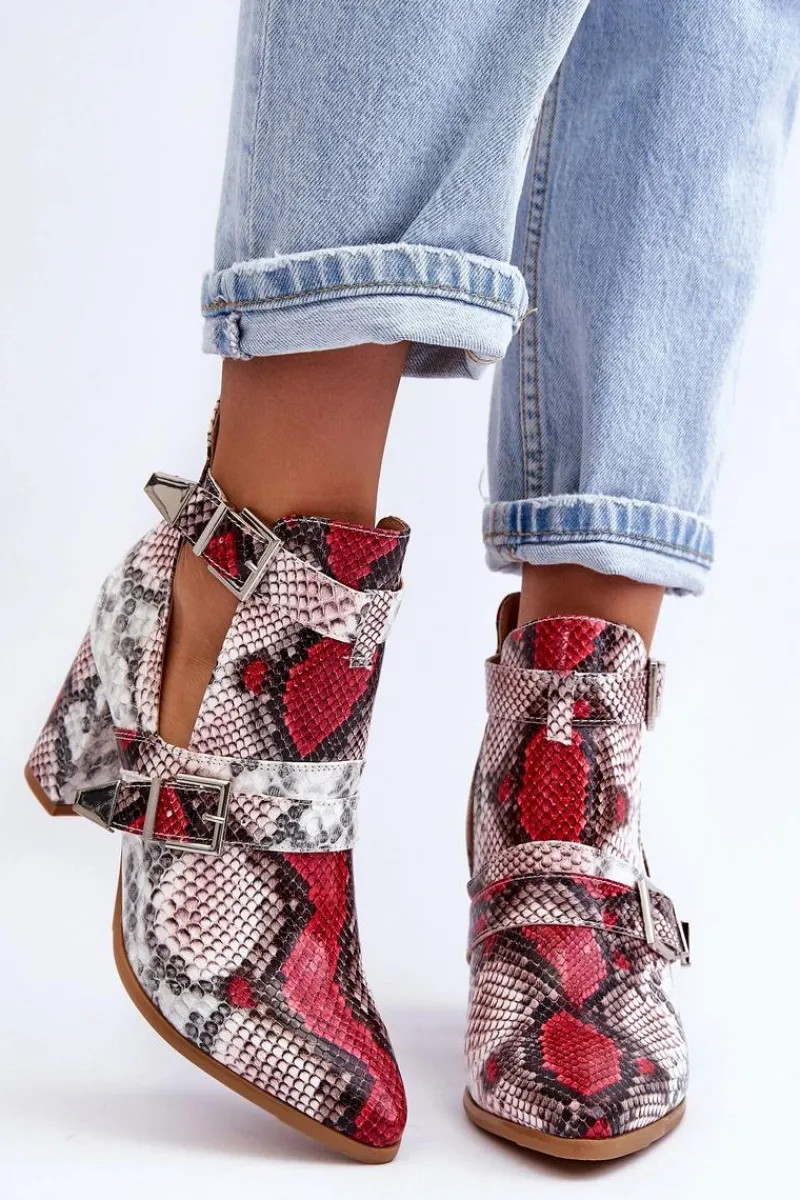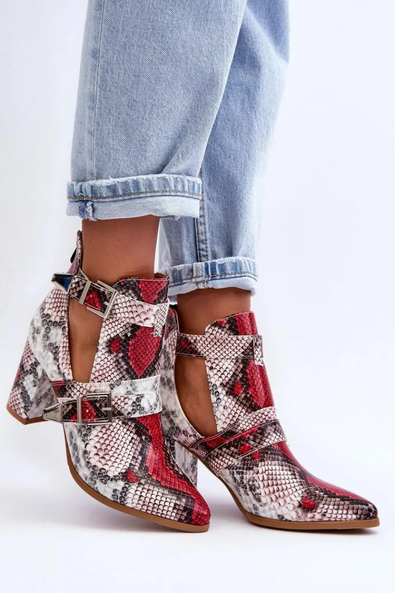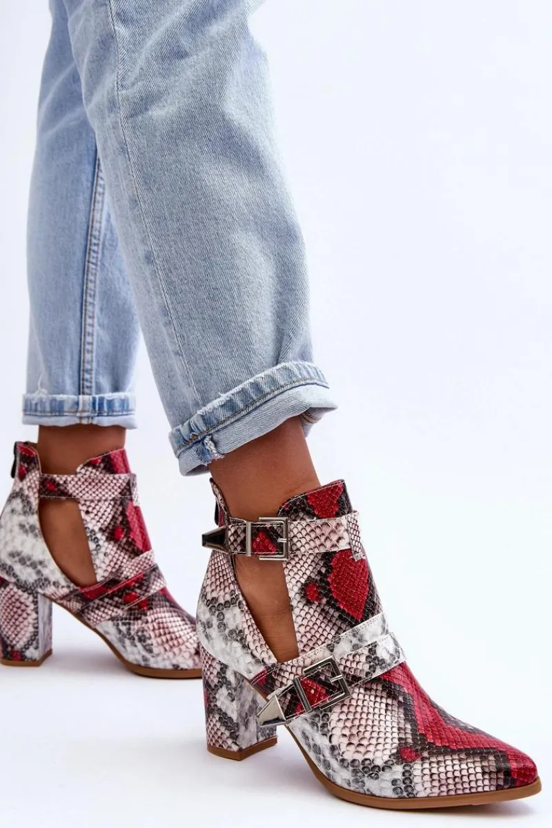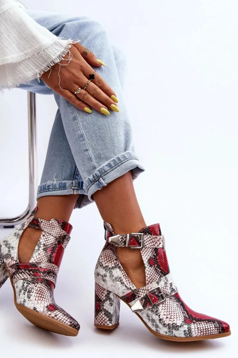 Niezwykłe botki posiadają z boku wycięcia oraz klamry. Z tyłu cholewki znajduje się suwak. Botki zostały wykonane z eko skóry. Osadzone na obcasie w postaci słupka. Nosek w szpic optycznie wysmukli stopę. Wkładka wykonana z tkaniny zapewni wygodę podczas użytkowania. Koniecznie powinnaś sprawdzić pozostałe modele botek! Podczas wyboru rozmiaru prosimy kierować się tabelą rozmiarów.