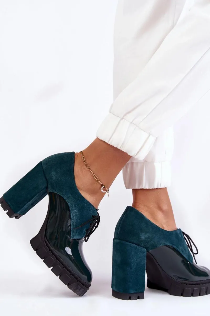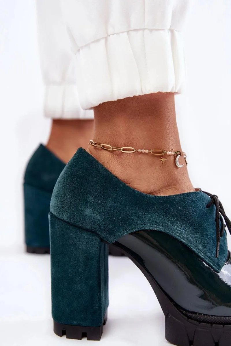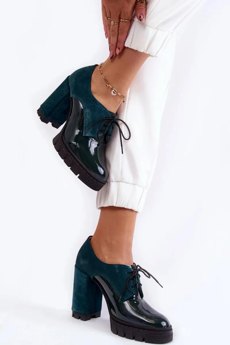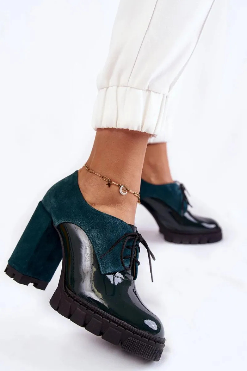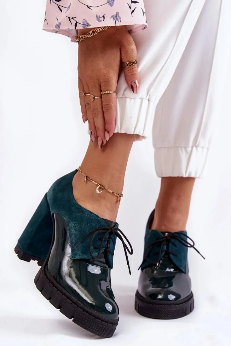 Hot Boto Modne Zamszowo-Lakierowane Botki Na Platformie Zielone Carisa