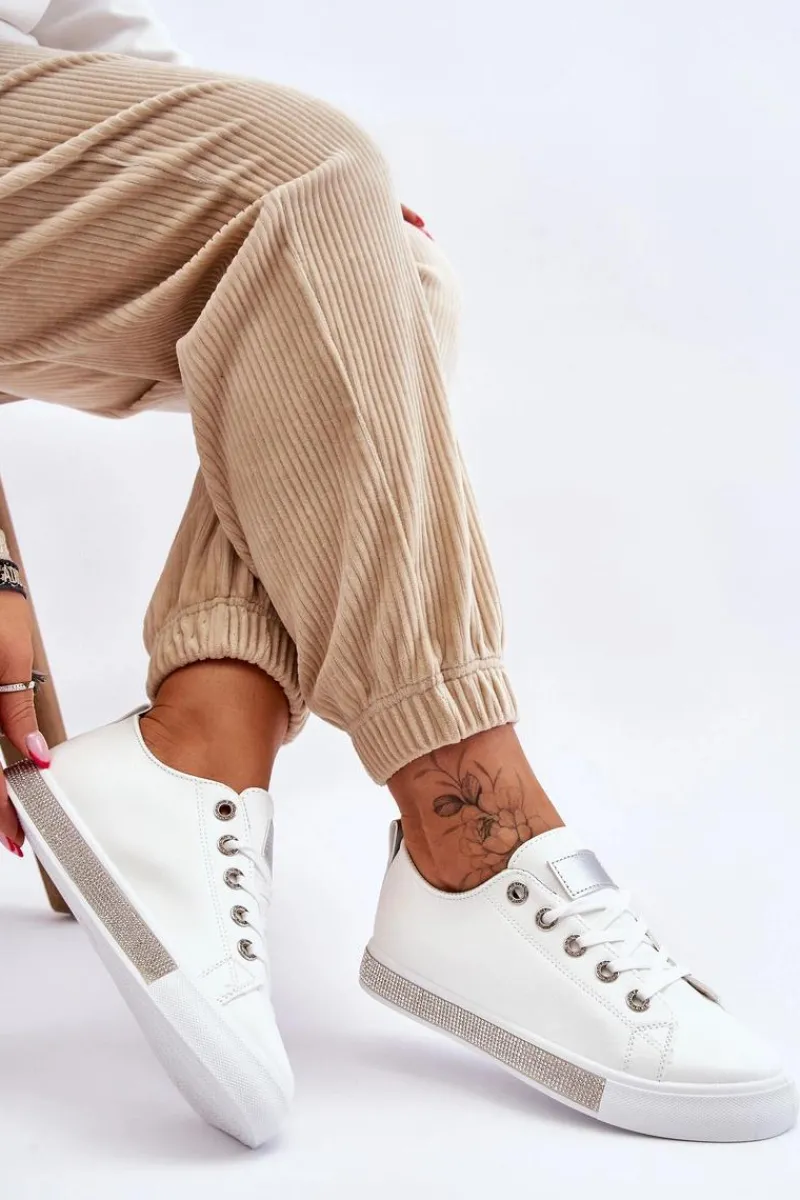Hot Boto Niskie Trampki Damskie Z Dżetami Biało-Srebrne Demira